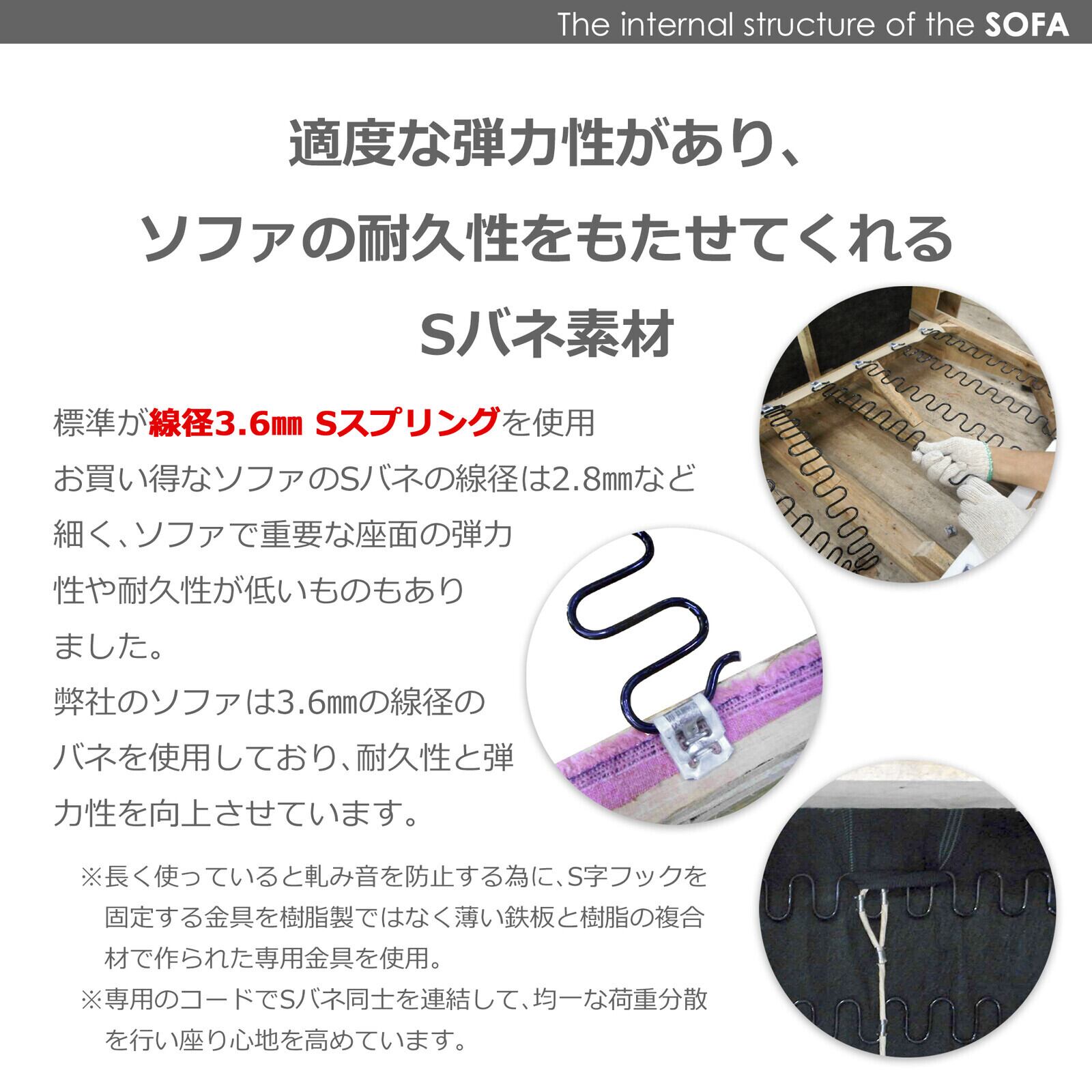 内部構造:Sバネ、ウェービングベルト、ウレタンフォーム