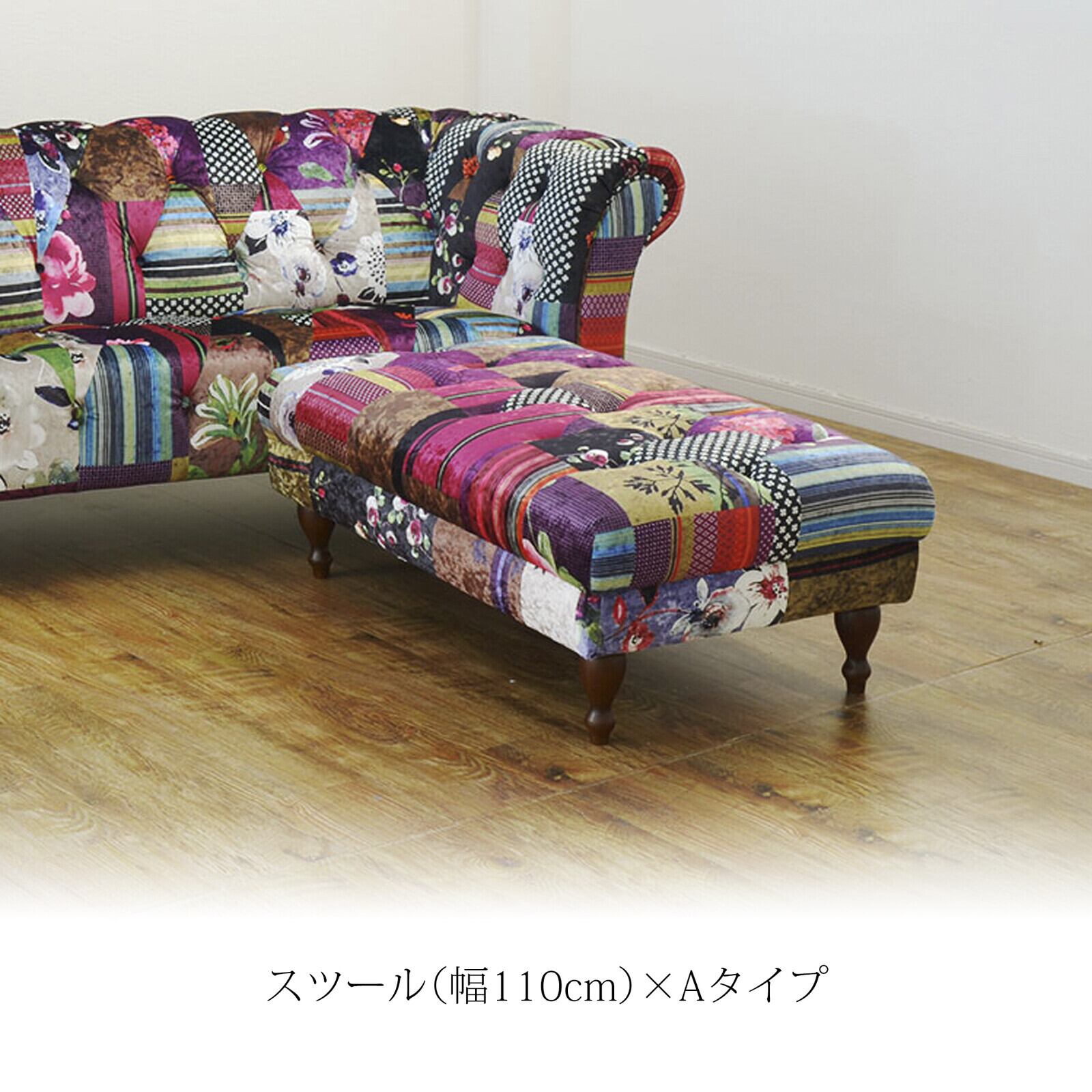 存在感あふれるパッチワークデザイン。空間を彩るアートのようなチェスターフィールドソファ。