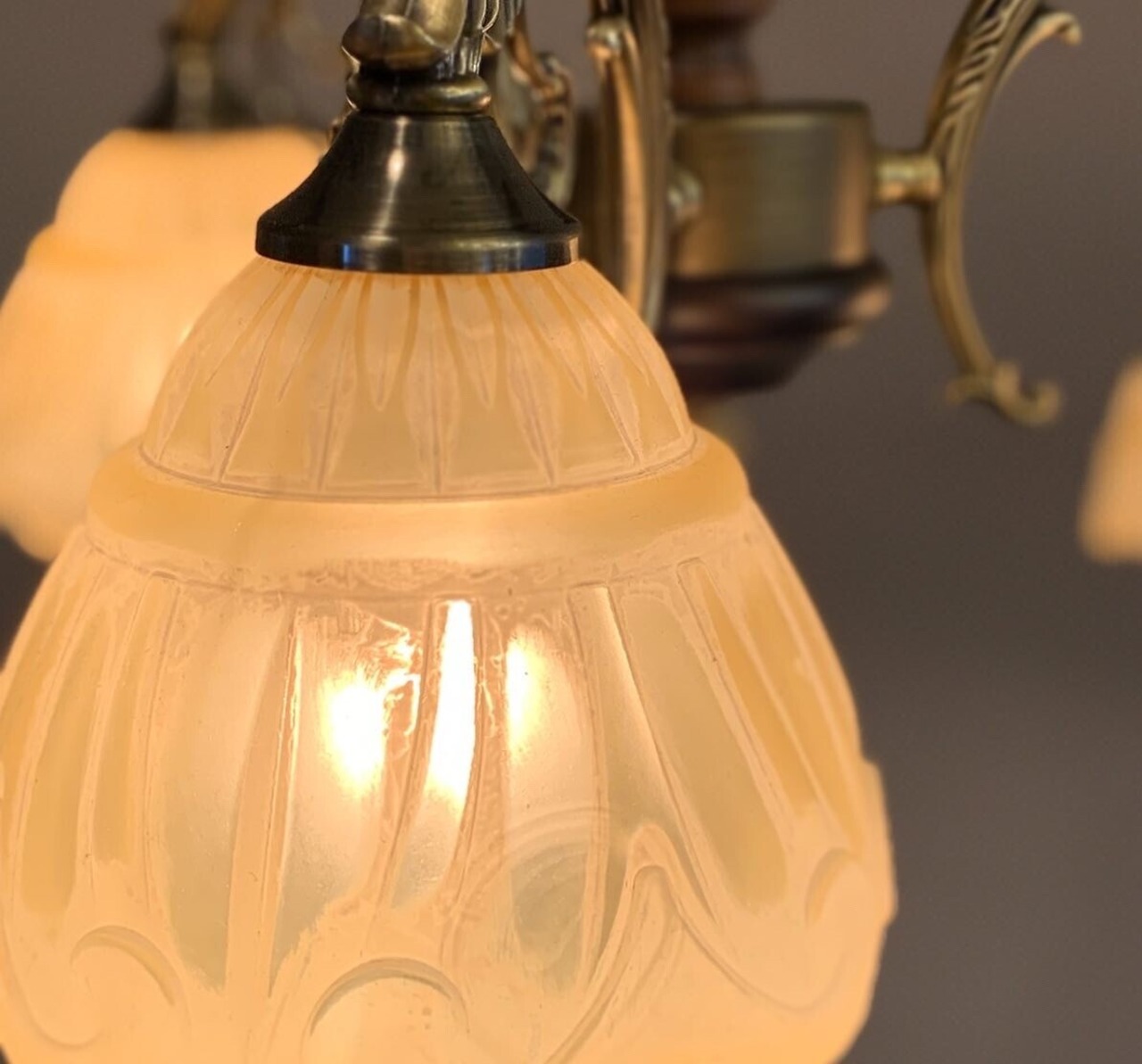鋳物アームにレトロな雰囲気のアンバーガラスを合わせました。