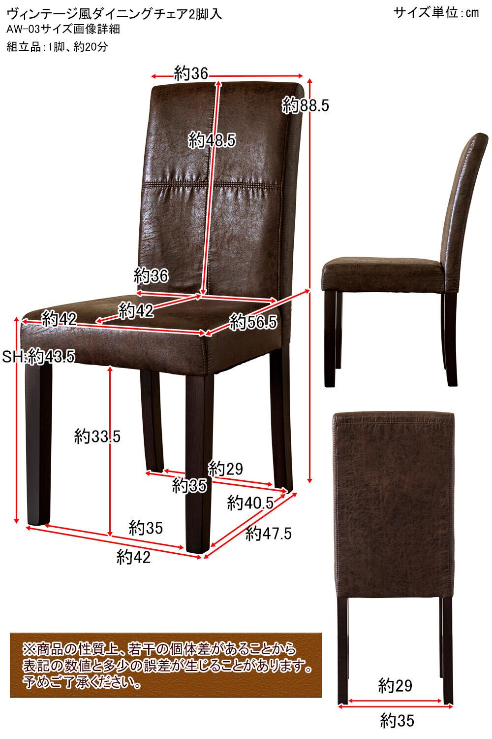 ◆ヴィンテージ風のPUレザーが魅力のダイニングチェアー2脚入◆