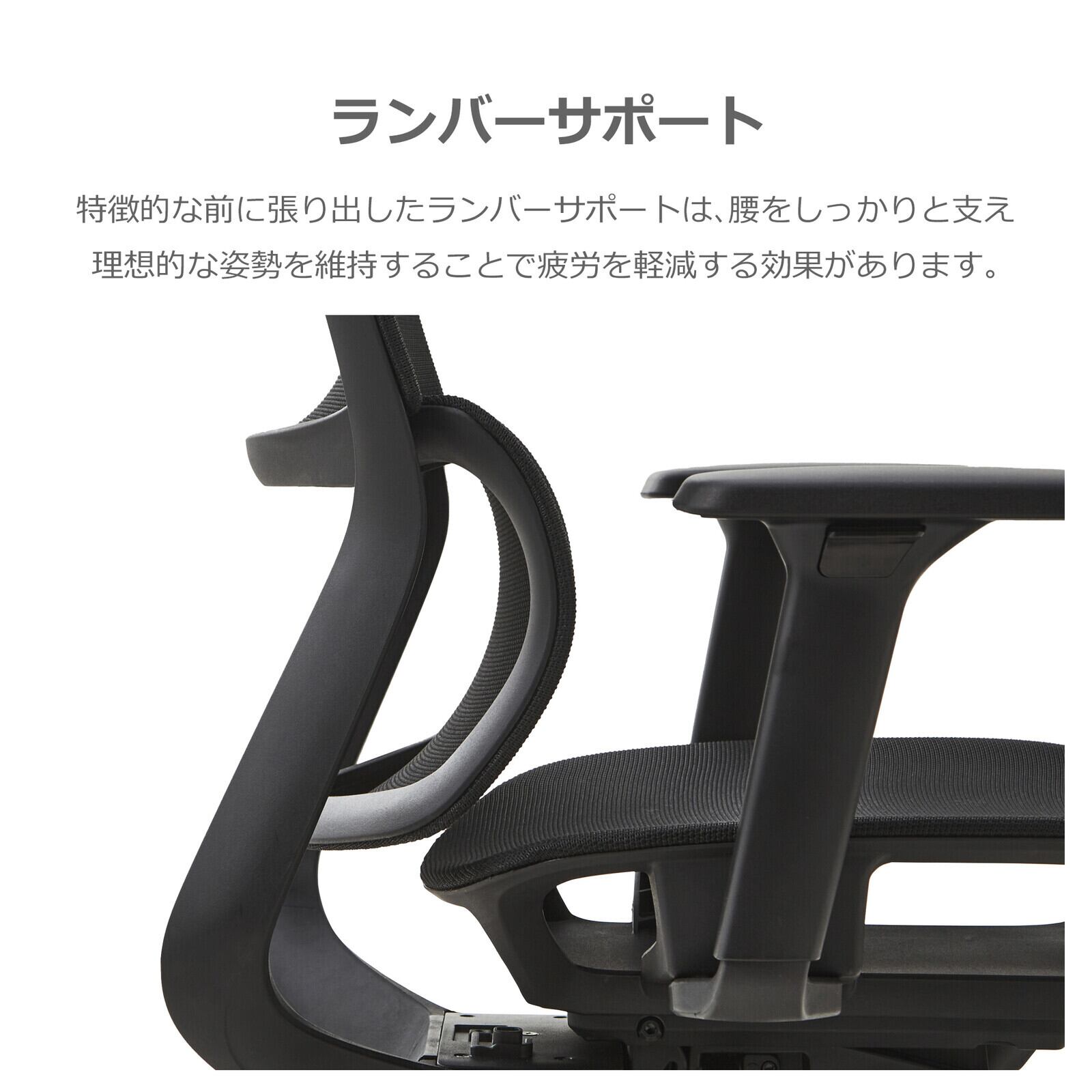 特徴的な前に張り出したランバーサポートは、腰をしっかりと支え理想的な姿勢を維持することで疲労を軽減する効果があります。