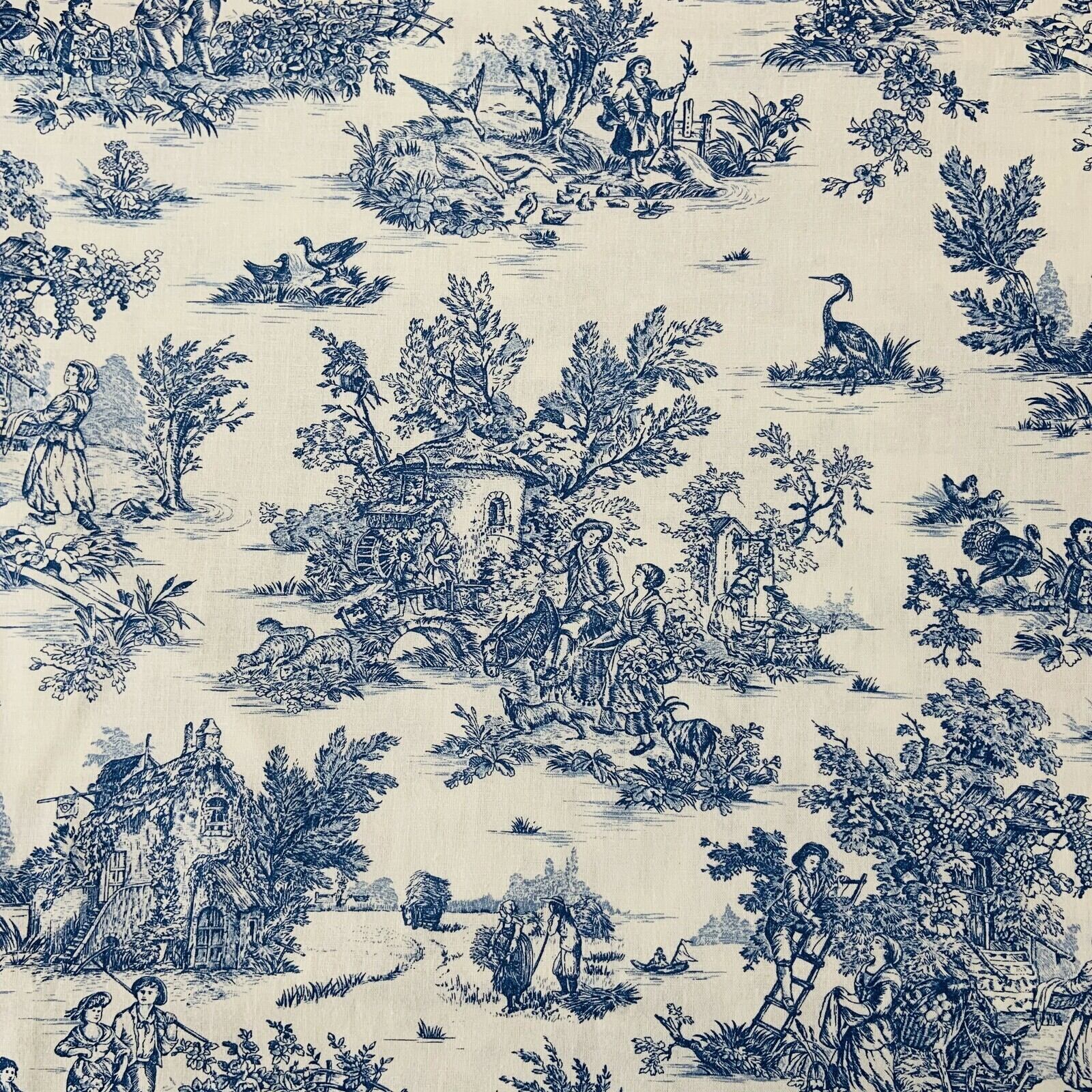 パストラルとは、18世紀ロココ時代に愛された題材で、のどかな田園風景の中、農作業に勤しむ人々や語らう男女を描いた風俗画を指します。ジュイ工場が生み出した単色濃淡で描かれる人物柄プリントにおいても、パストラルは代表的な柄の一つでした。MFTA社の『パストラル』は、その18世紀に愛された田園風俗画柄の雰囲気を伝えるトワル・ド・ジュイらしい魅力あふれる生地です。