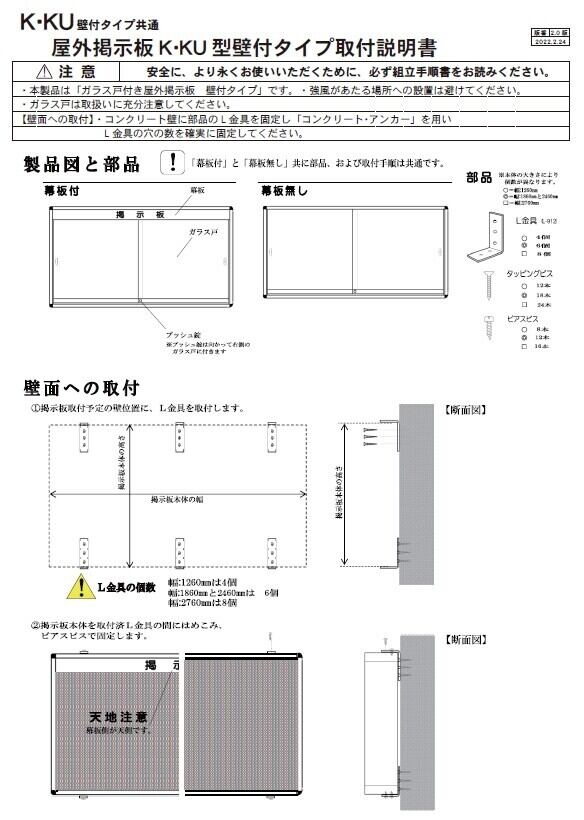 日本製 壁付型 幕板付 鍵付 板厚140mm K型屋外用掲示板(壁付タイプ)