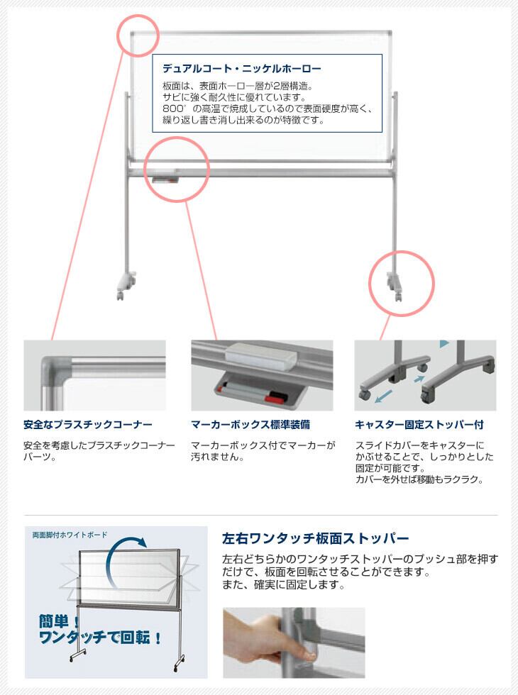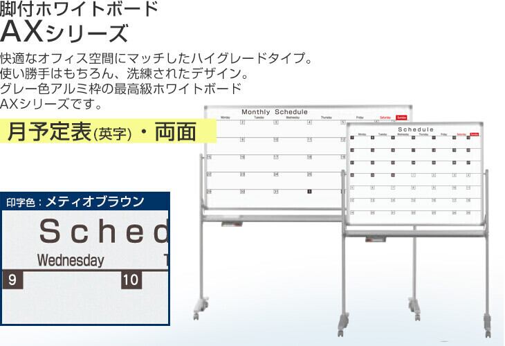 日本製 ホワイトボード AXシリーズ両面脚付スケジュール Enamel Whiteboard 「2025新作」AXシリーズ両面脚付スケジュールボード[外寸]幅1924×奥行570×高さ1847mm、[板面寸法]幅1810×高さ920mm、[有効寸法]幅1760×高さ870mm、[重さ]29.4kg(2個口:板面+脚スタンド) JAN:49657191682573