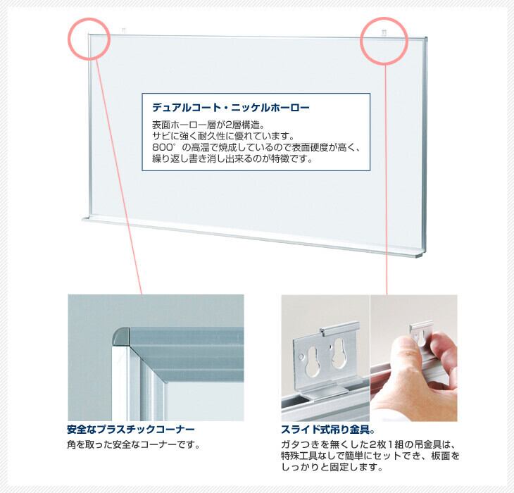 ホワイトボード表面材:JFEホーロー/デュアルコート・ニッケンホーロー(2層ホーロー)