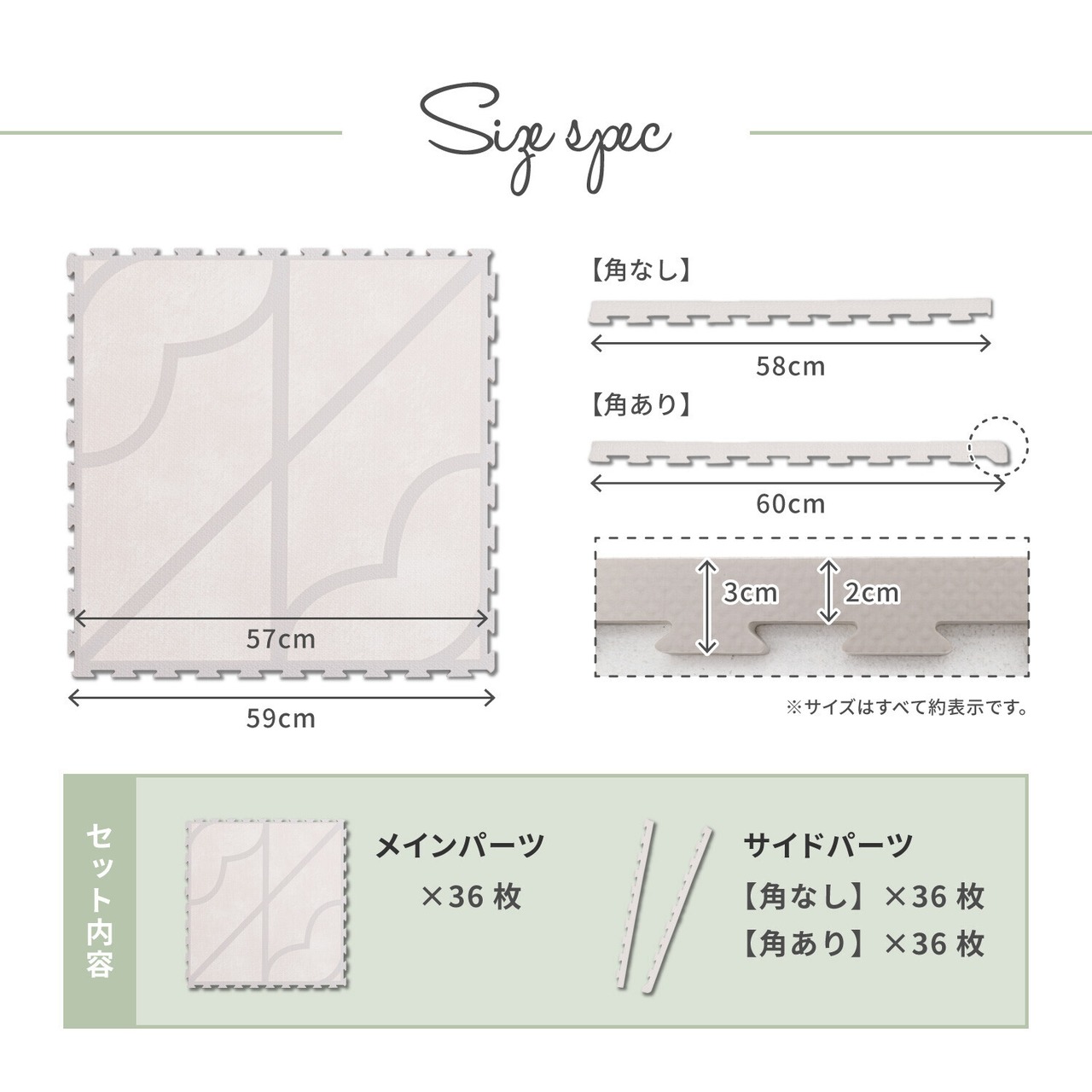 1セット9枚入りで約2帖、ラグ1枚分の大きさになります。