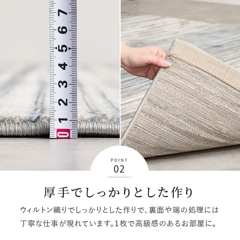 ウィルトンラグはパイルの密度が高く耐久性に優れ、