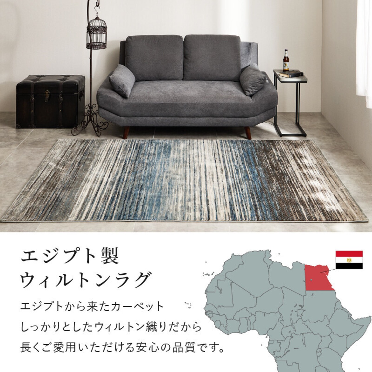 繊細なグラデーション風デザインのウィルトンラグ。