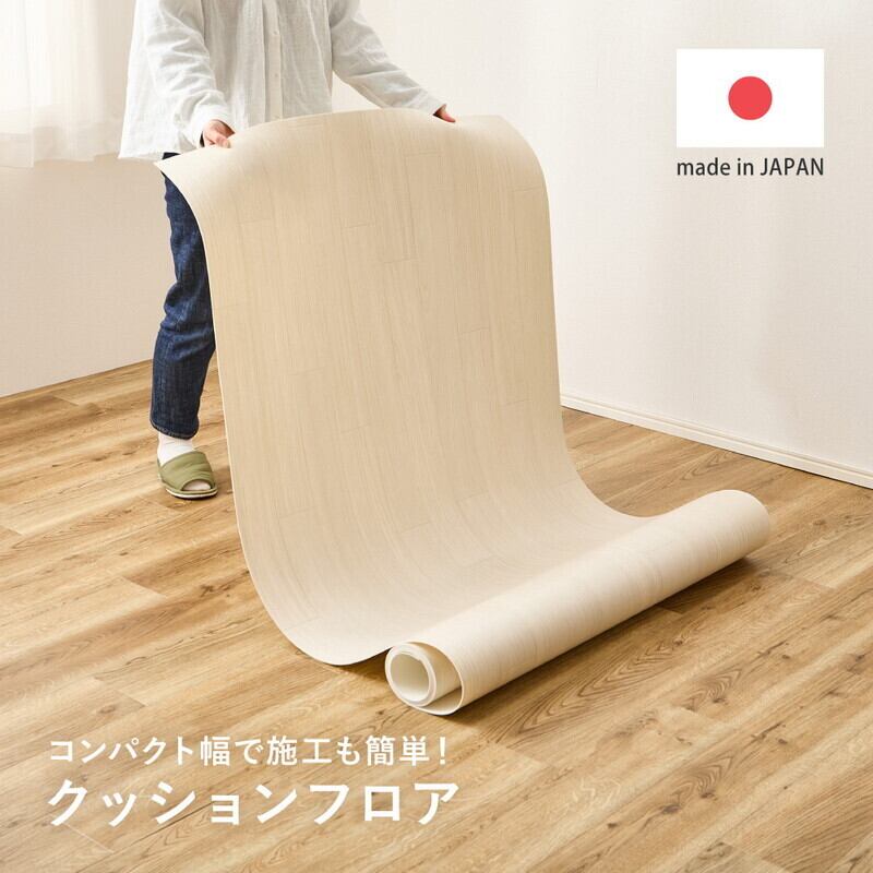 ロングマット状(幅約91cm)になっているクッションフロアをつなぎ合わせて敷き詰めるタイプです。4.5帖用と6帖用は3枚、8帖用は4枚に分かれています。持ち運びも設置も一人でも取り扱いがしやすいです。接着材を使用しないので賃貸の模様替えにも安心です。