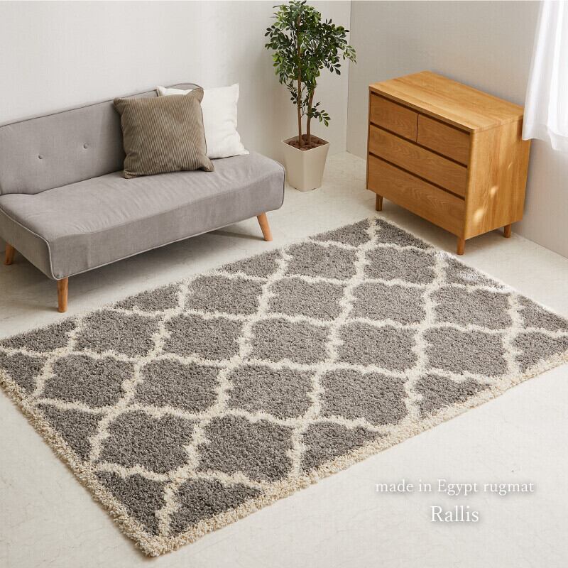約160×235cm ウィルトン織ラグ 長毛 幾何学模様 エジプト製 「ラリス」 ベージュ グレー