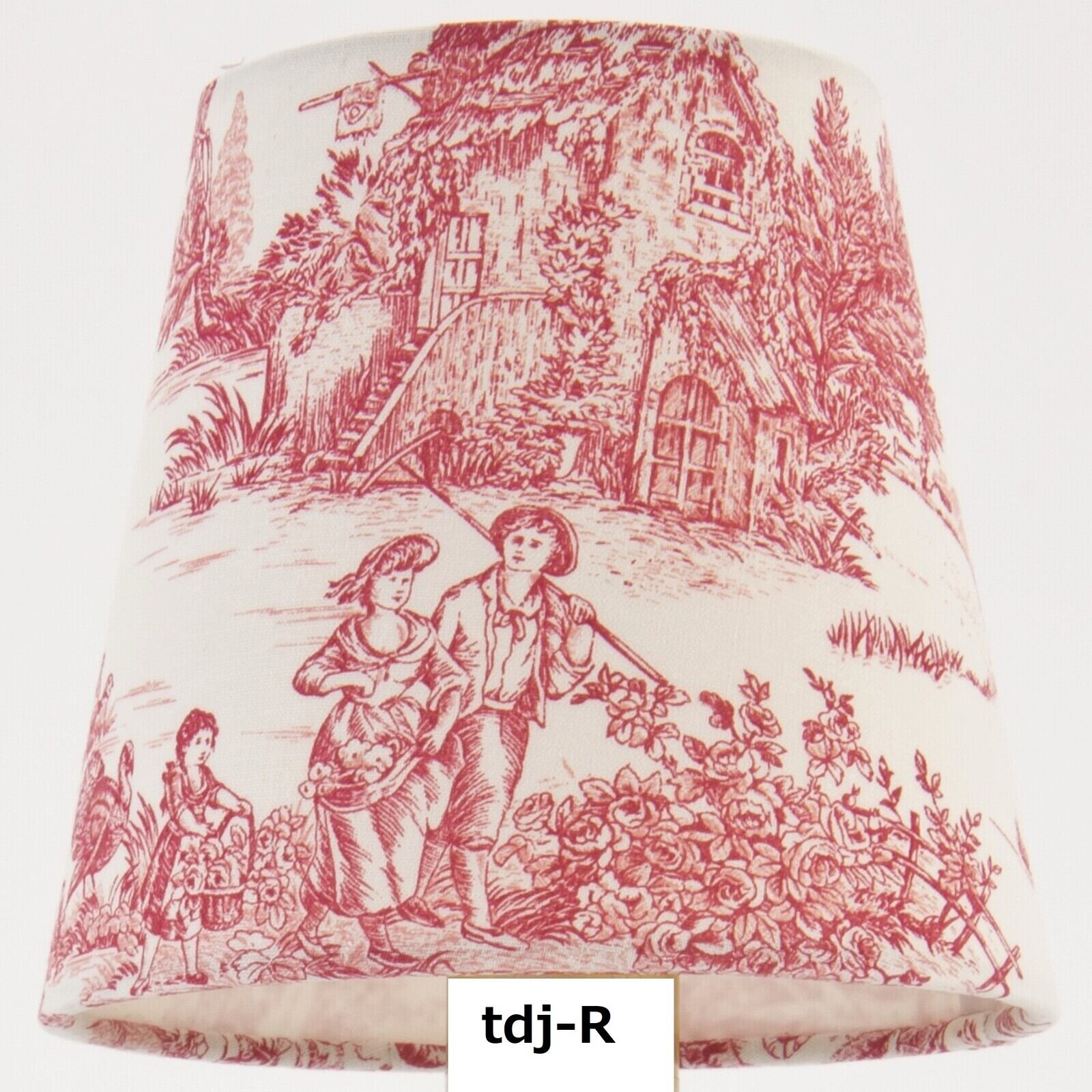 シェードは円型で裏側には耐熱樹脂を使用しています。ランプシェード用に柄の小さい生地を選び、トワル・ド・ジュイの風景柄をより楽しんでいただける商品です。ランプシェードは電球にはめ込むランプキャッチタイプとなっております。