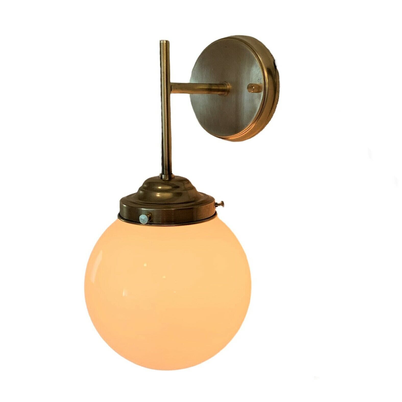 真鍮生地パイプ&ホルダーにΦ150mmの丸ガラスを使用したブラケットライトです。