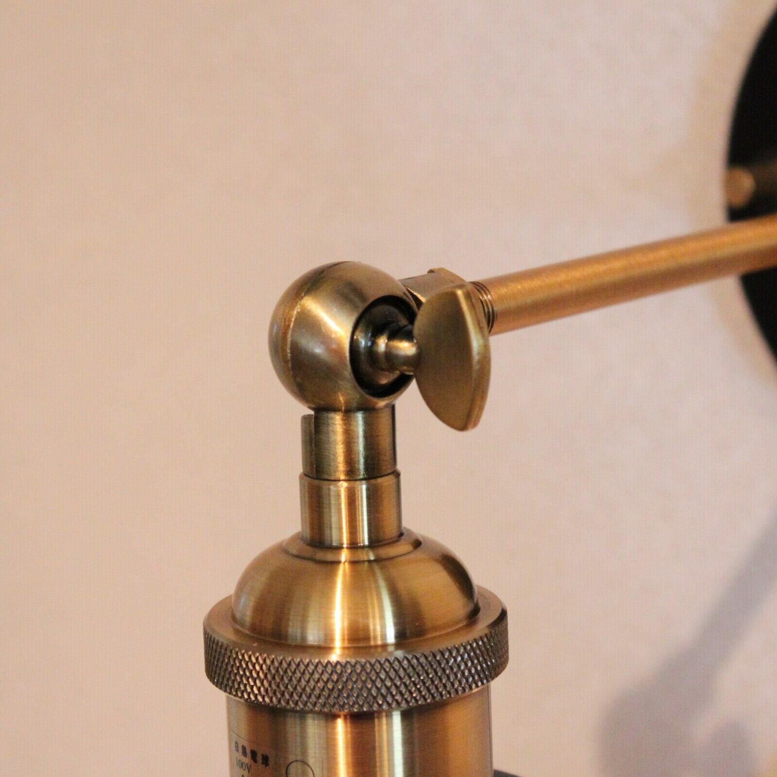 真鍮メッキのソケットカバーに黒塗装のシェードを組み合わせたブラケットライトです。