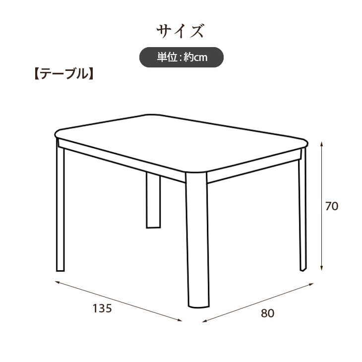 ●素材/[こたつ]フレーム・脚:ラバーウッド材、天板:MD転写、[布団]表地/しじら折り:綿100%、フランネル:ポリエステル100%、中綿:ポリエステル100%、コーナー部:ポリエステル100%、[チェア]フレーム:天然木ラバーウッド材、座面:PVC・ウレタンフォーム
