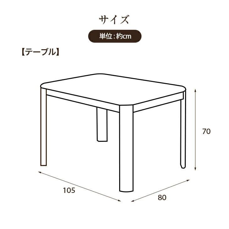 ダイニングこたつフルセット 幅105cm用 テーブル+布団+チェア2脚