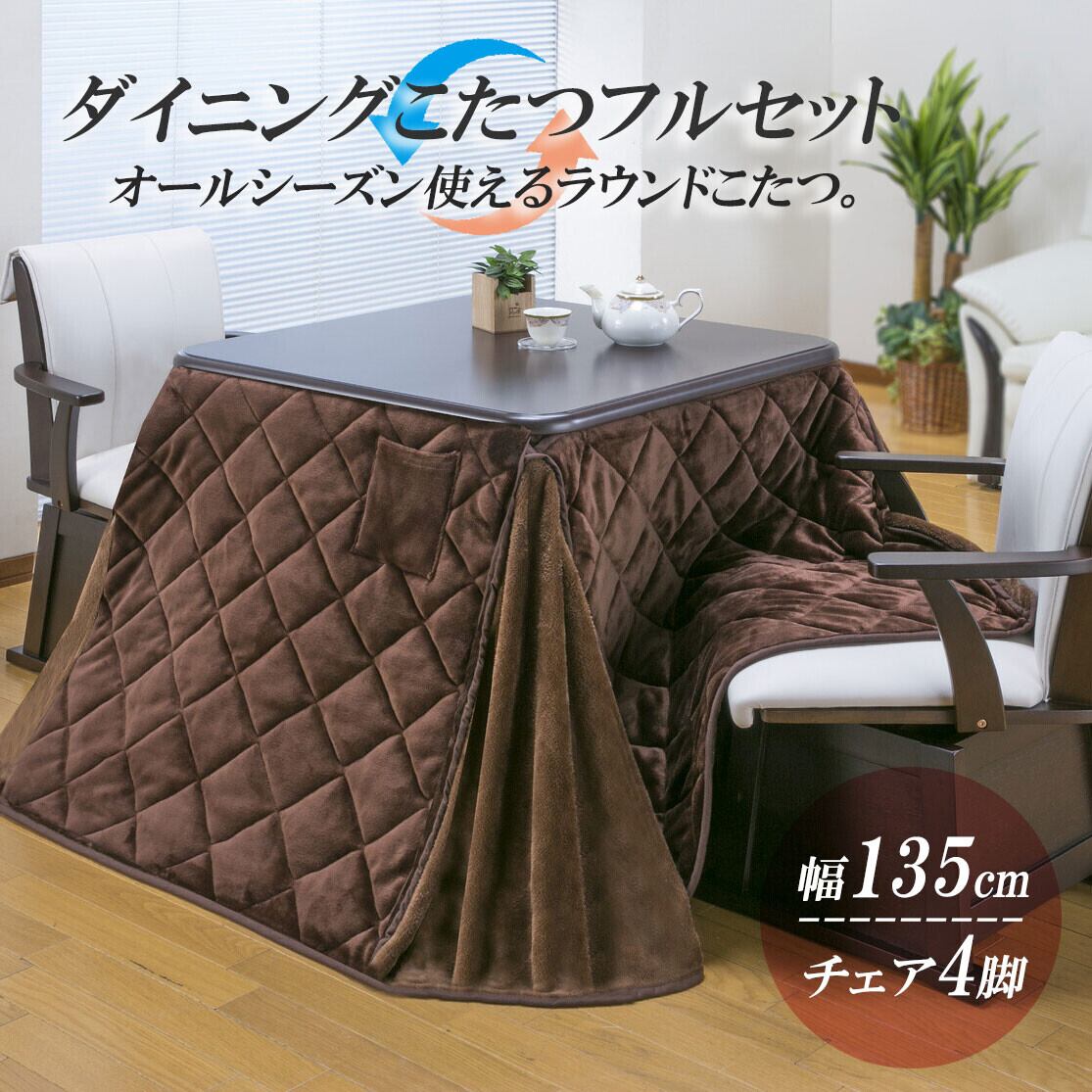 ダイニングこたつフルセット 幅135cm用 テーブル+布団+チェア4脚