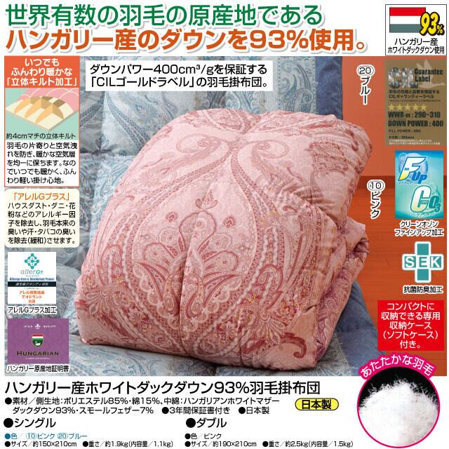 世界有数の羽毛の原産地であるハンガリー産のダウンを93%使用。