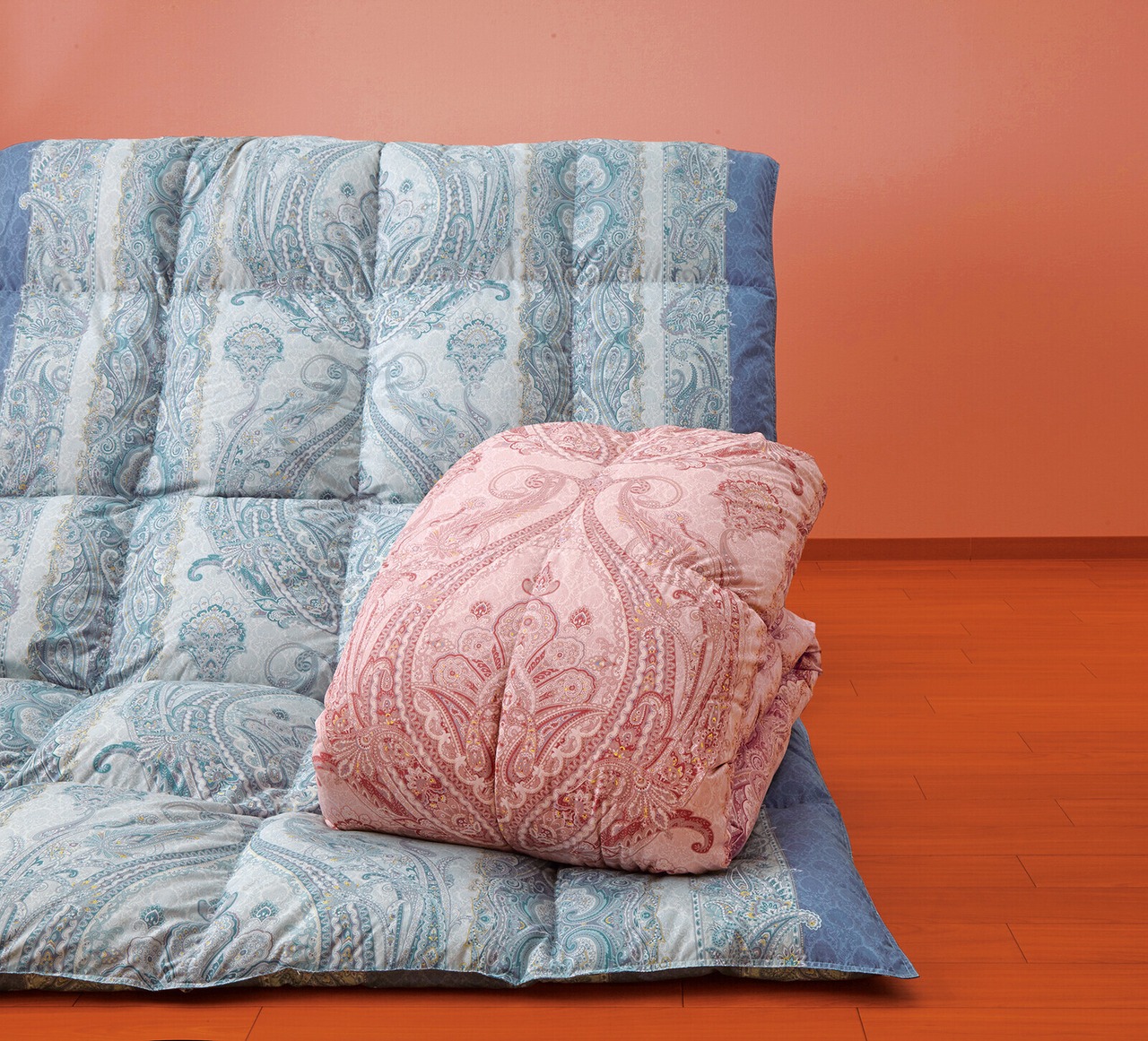 ●羽毛の片寄りと空気洩れを防ぎ、暖かな空気層を均一に保ちます。なのでいつでも暖かく、ふんわり軽い掛け心地。