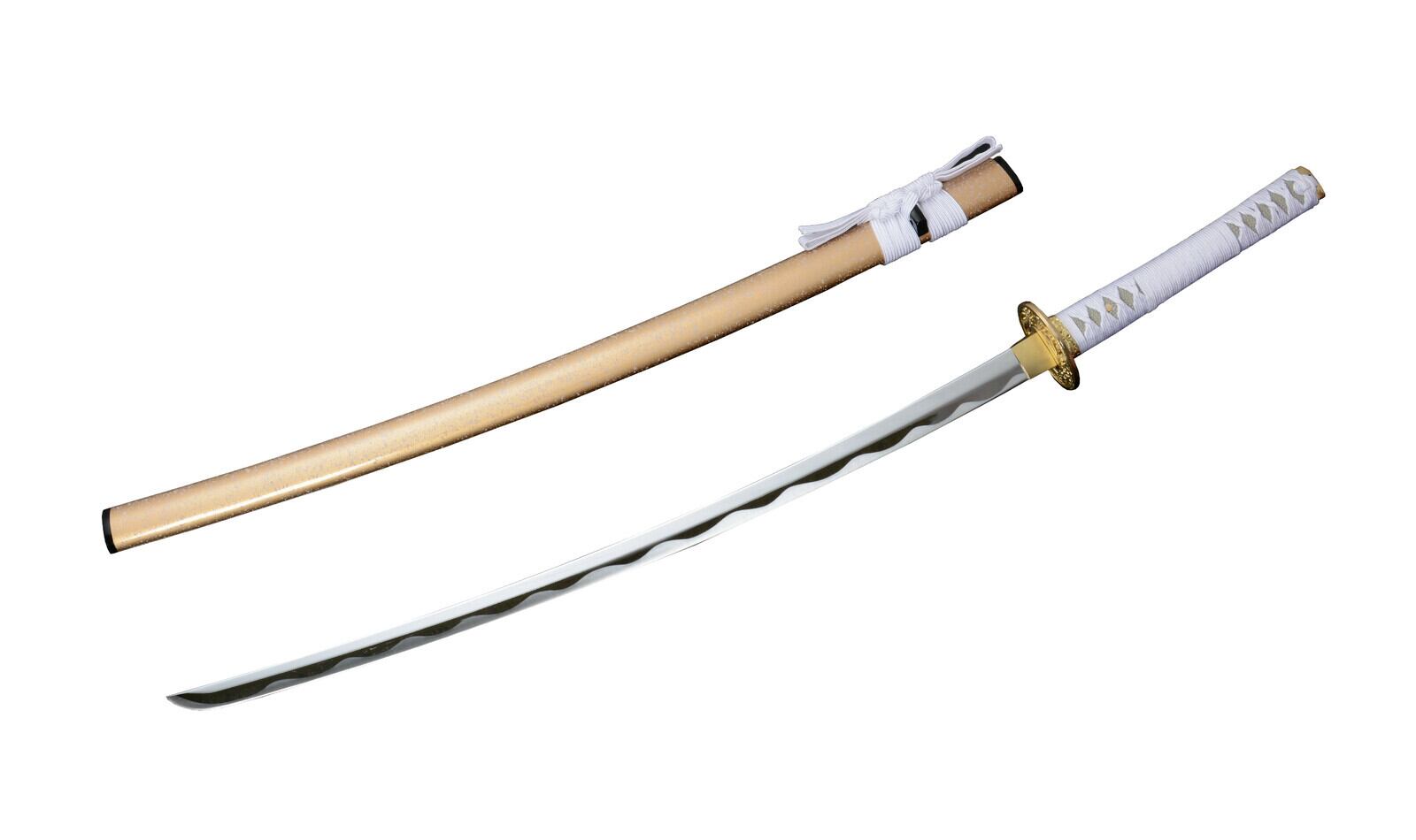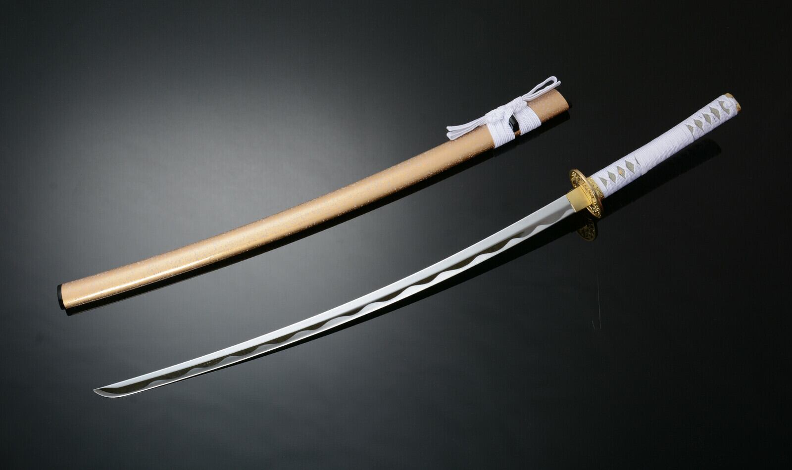 ●刃紋の美しさが映える白い雪のような鞘を纏わせ、品位を高めたリアルな刀剣に仕上げました