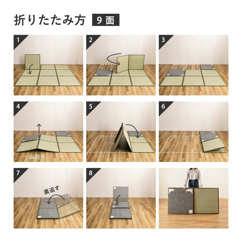 置き畳を縫製して繋げ、折りたためるい草連結置き畳として登場。