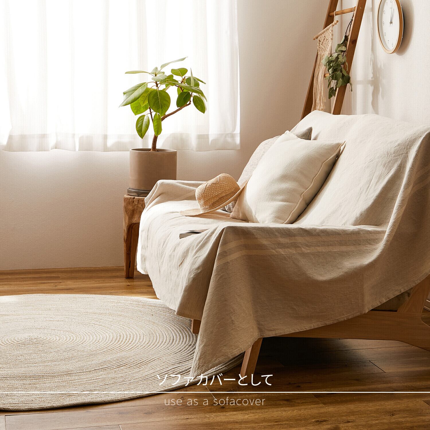 ベッドカバーやソファカバー、膝掛けやテーブルクロス、クリップで留めてカーテンに、マルチに使えるファブリックです。