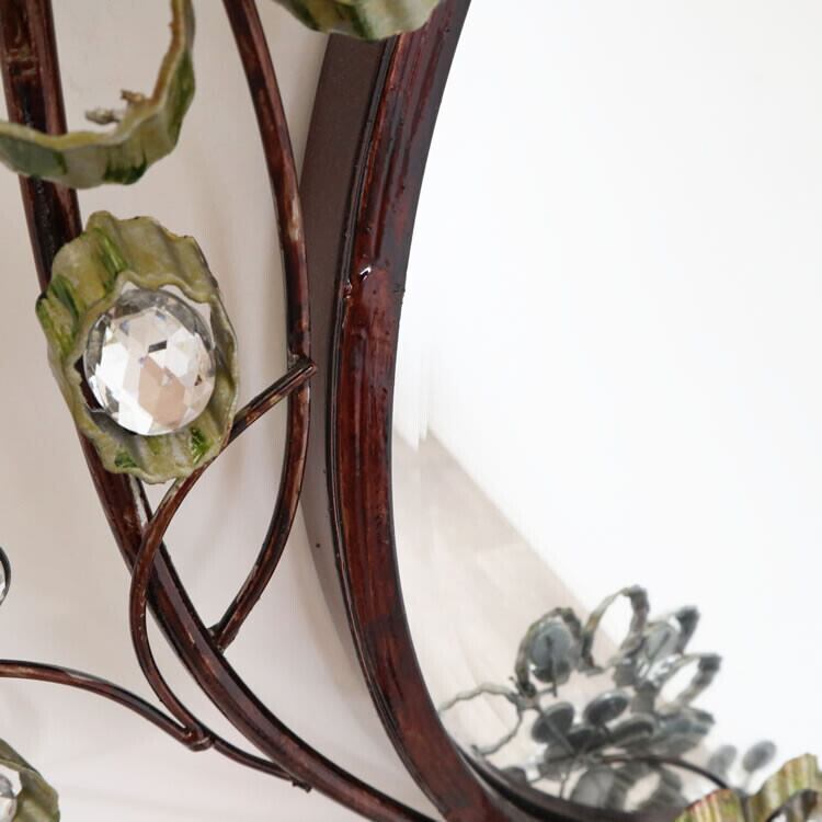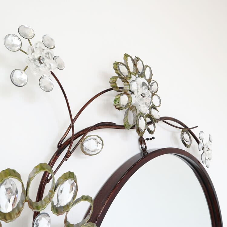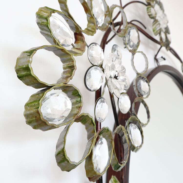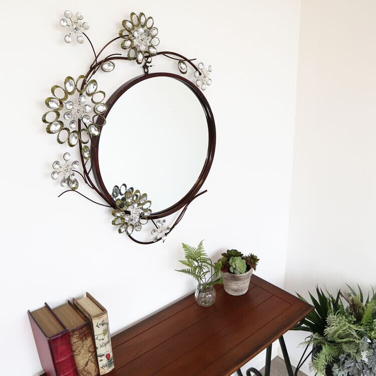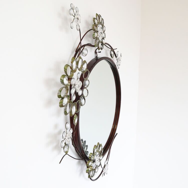 ミラーの周りのキラキラアクリルのお花がとてもかわいい壁掛けミラー(鏡)です。