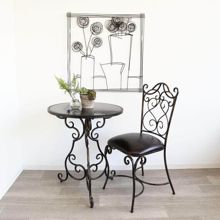 インテリア、エクステリア(ガーデニング、屋根あり)の両方で使えるアンティーク調アイアンチェアー。