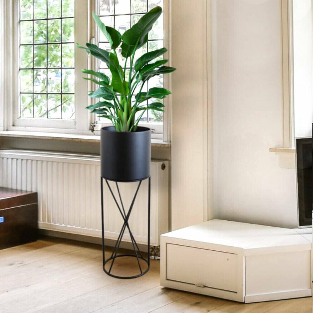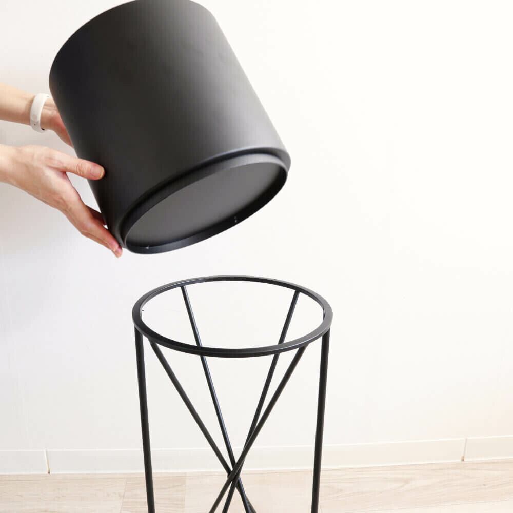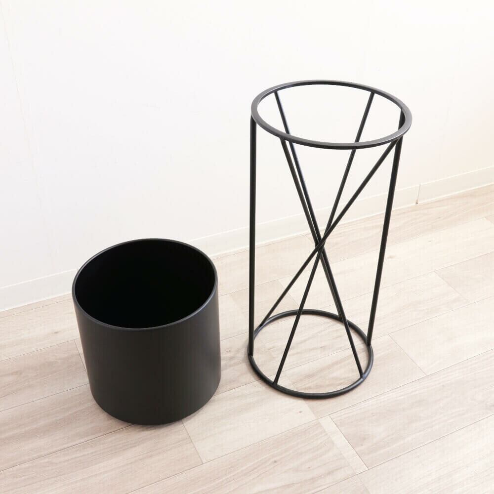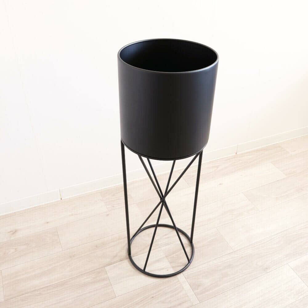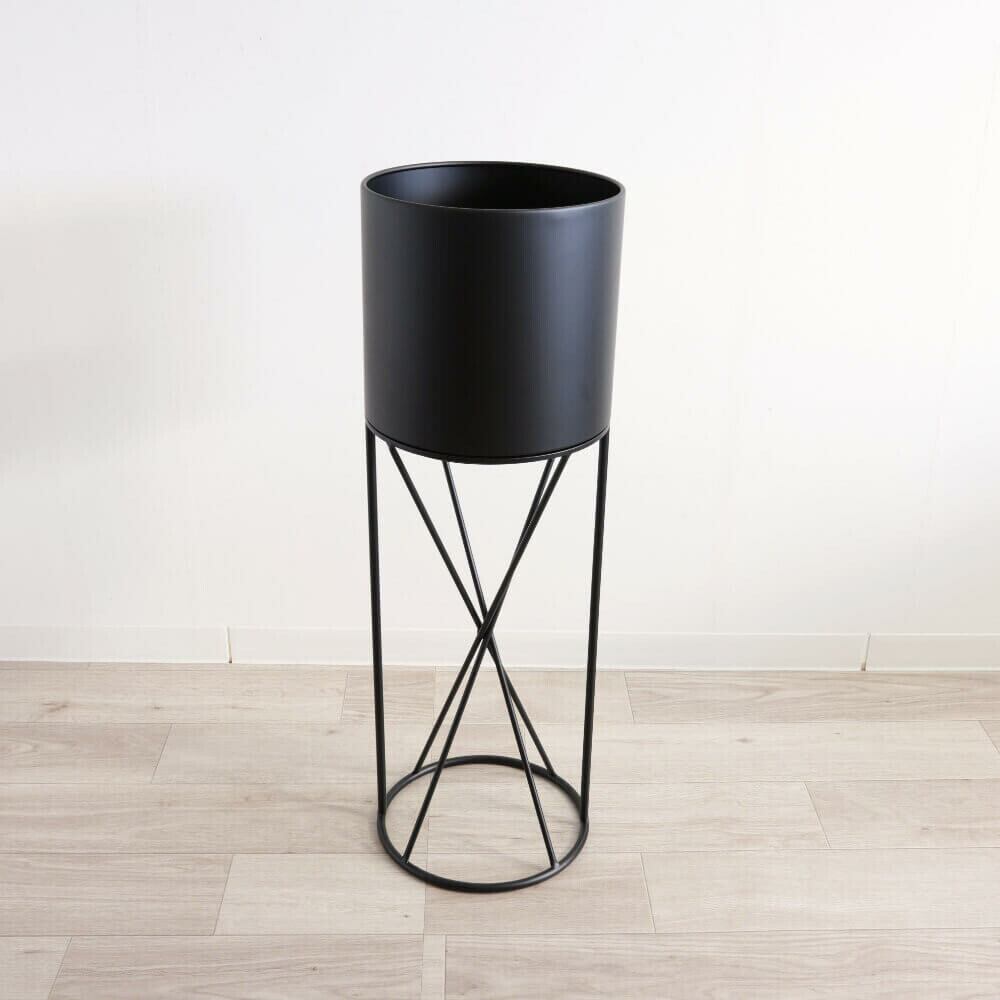 ブラックアイアンがオシャレなモダンテイストのスタンド型プランター(鉢カバー)Lサイズです。