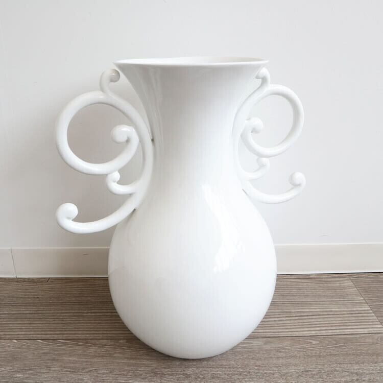 形がとても個性的で上品なホワイトフラワーベース(花瓶)です。
