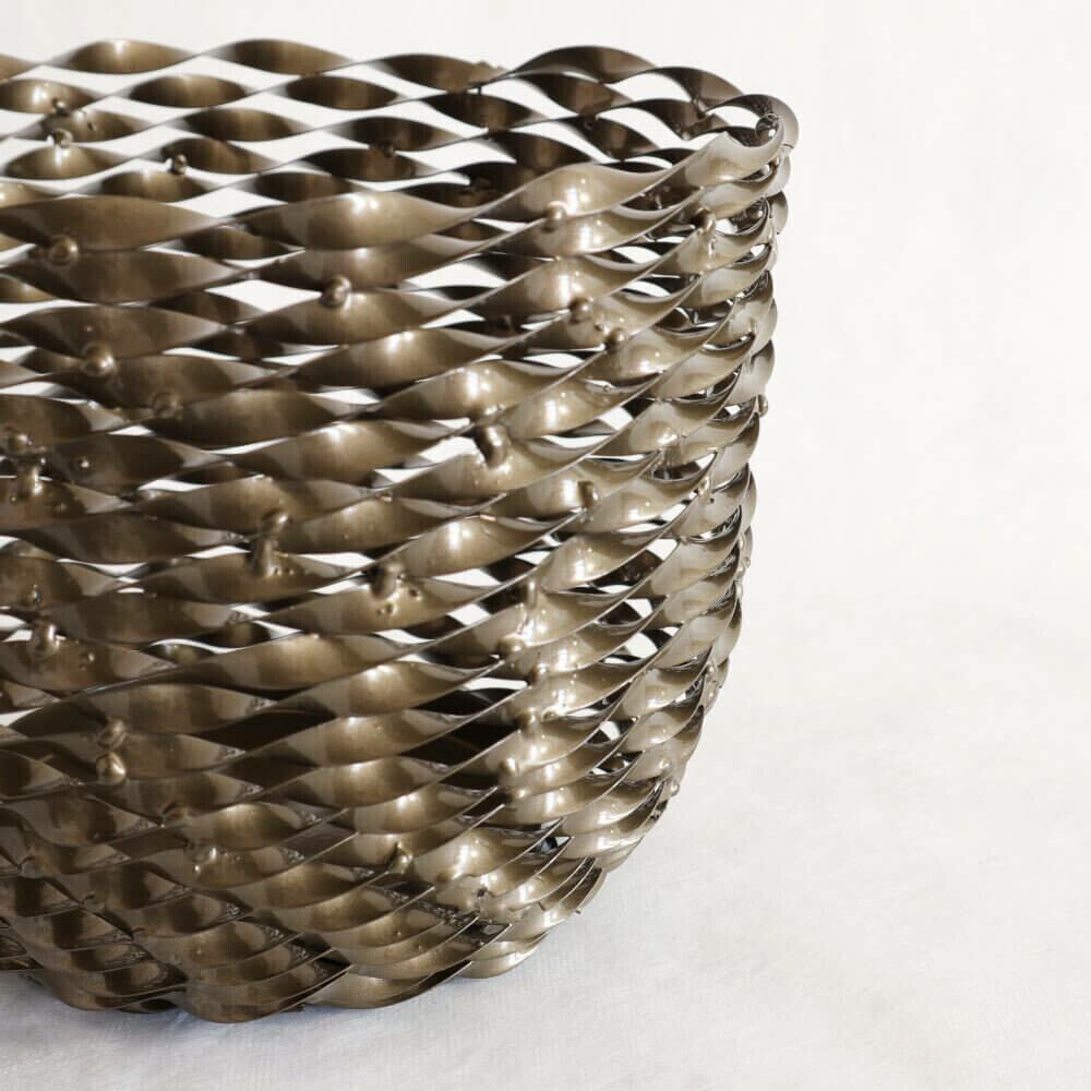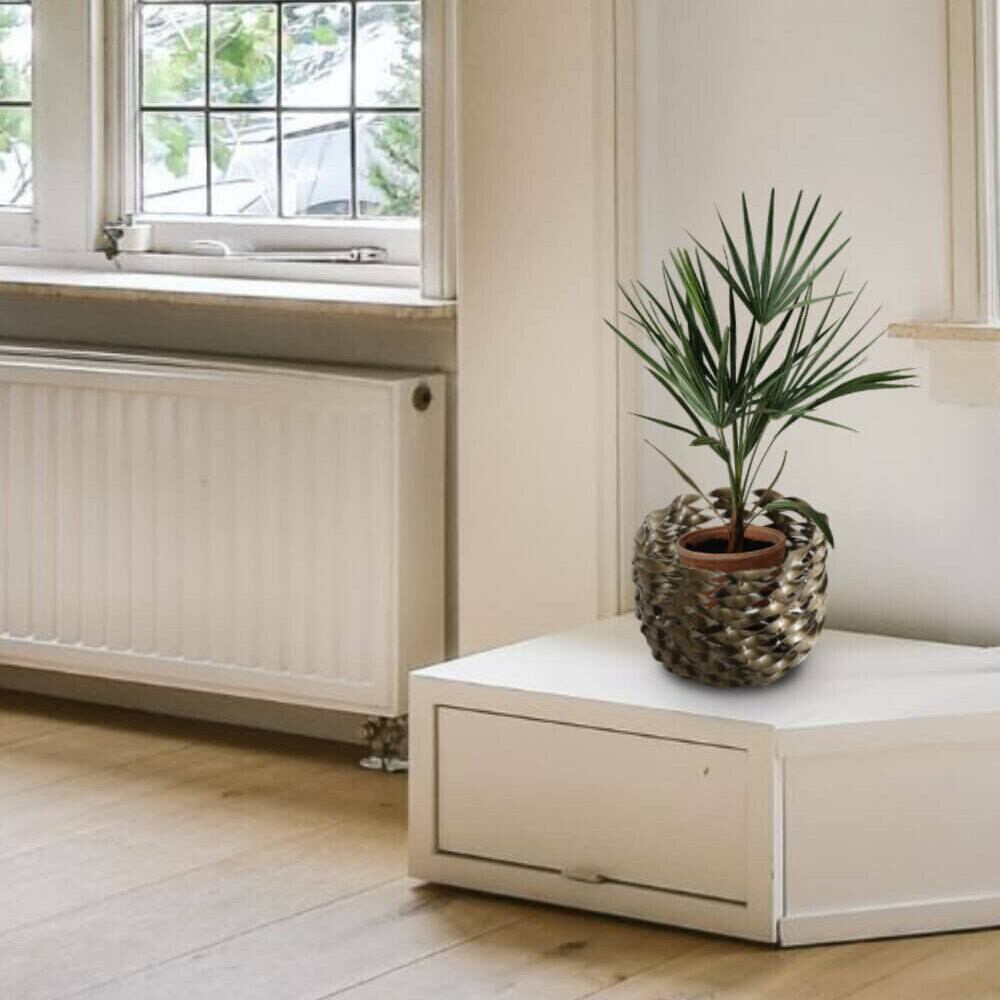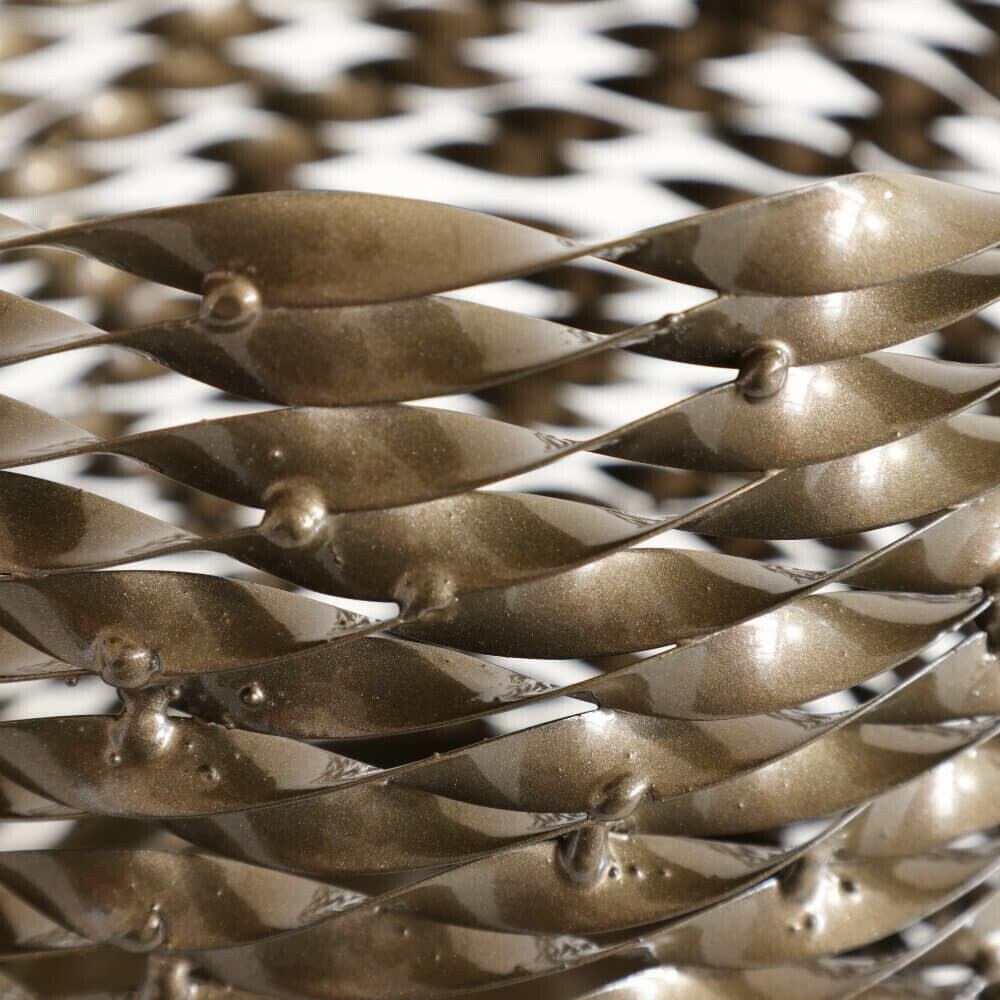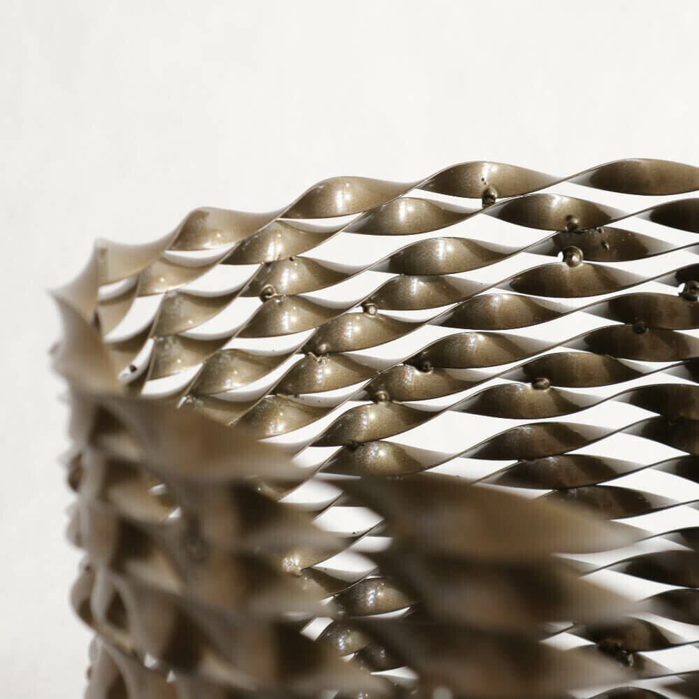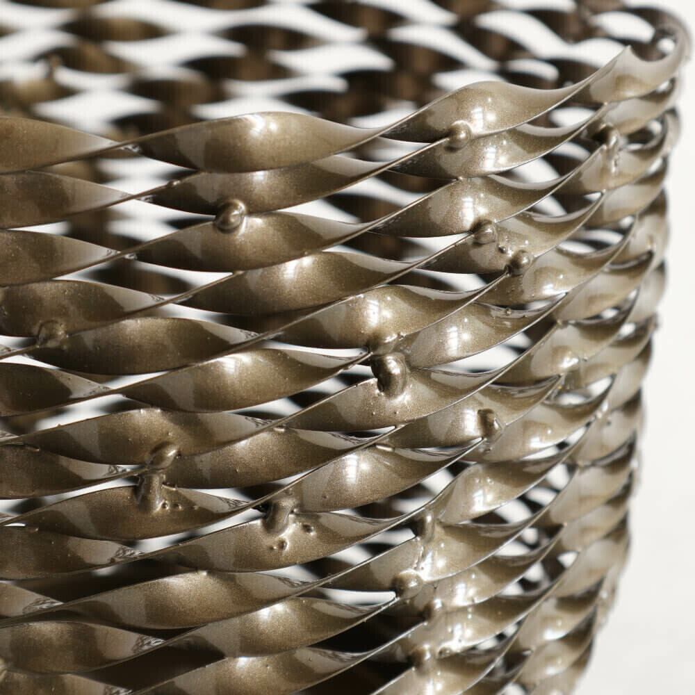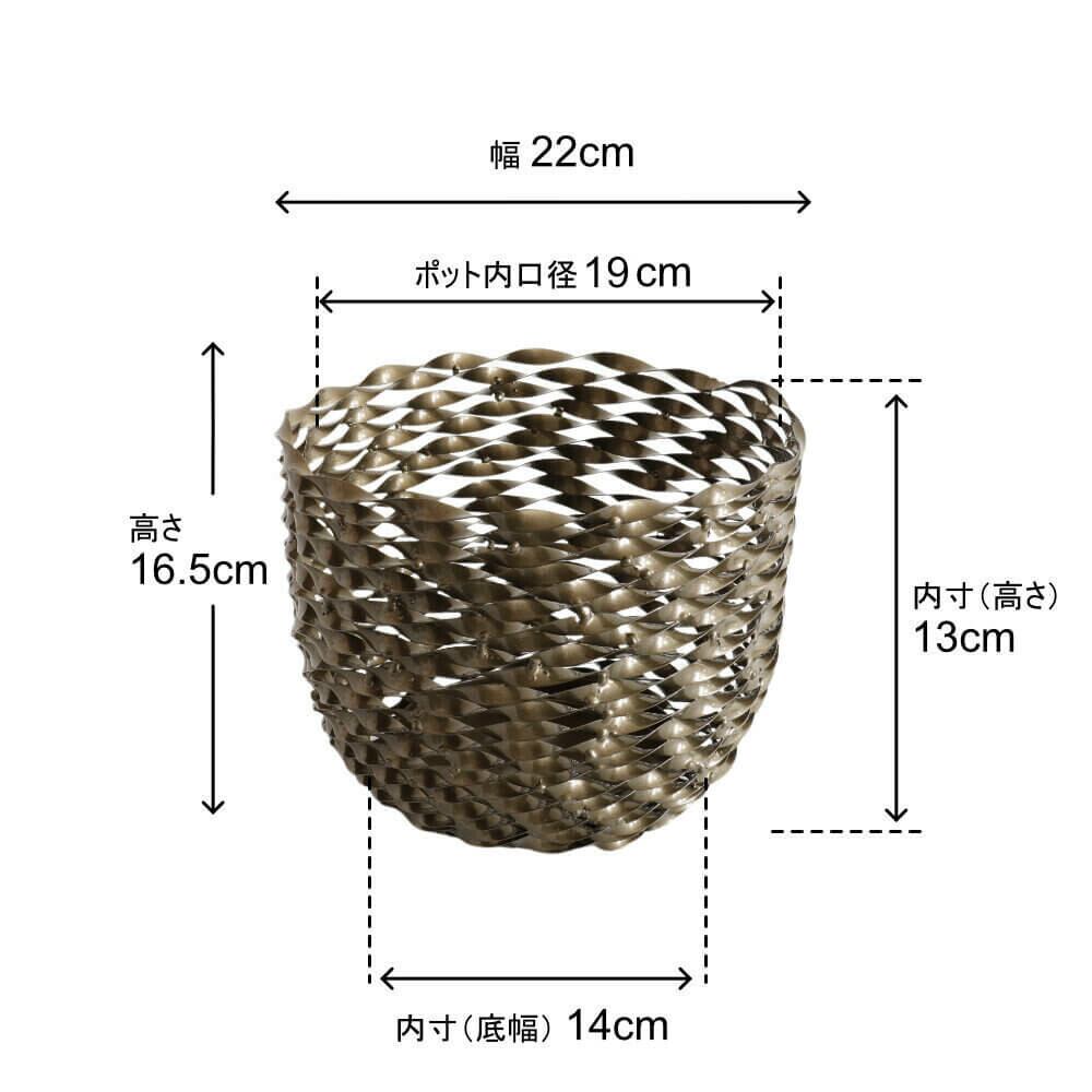 ゴールドのアイアンが一つ一つ溶接で結合しているモダンテイストのアイアンプランター(鉢カバー)Lサイズです。