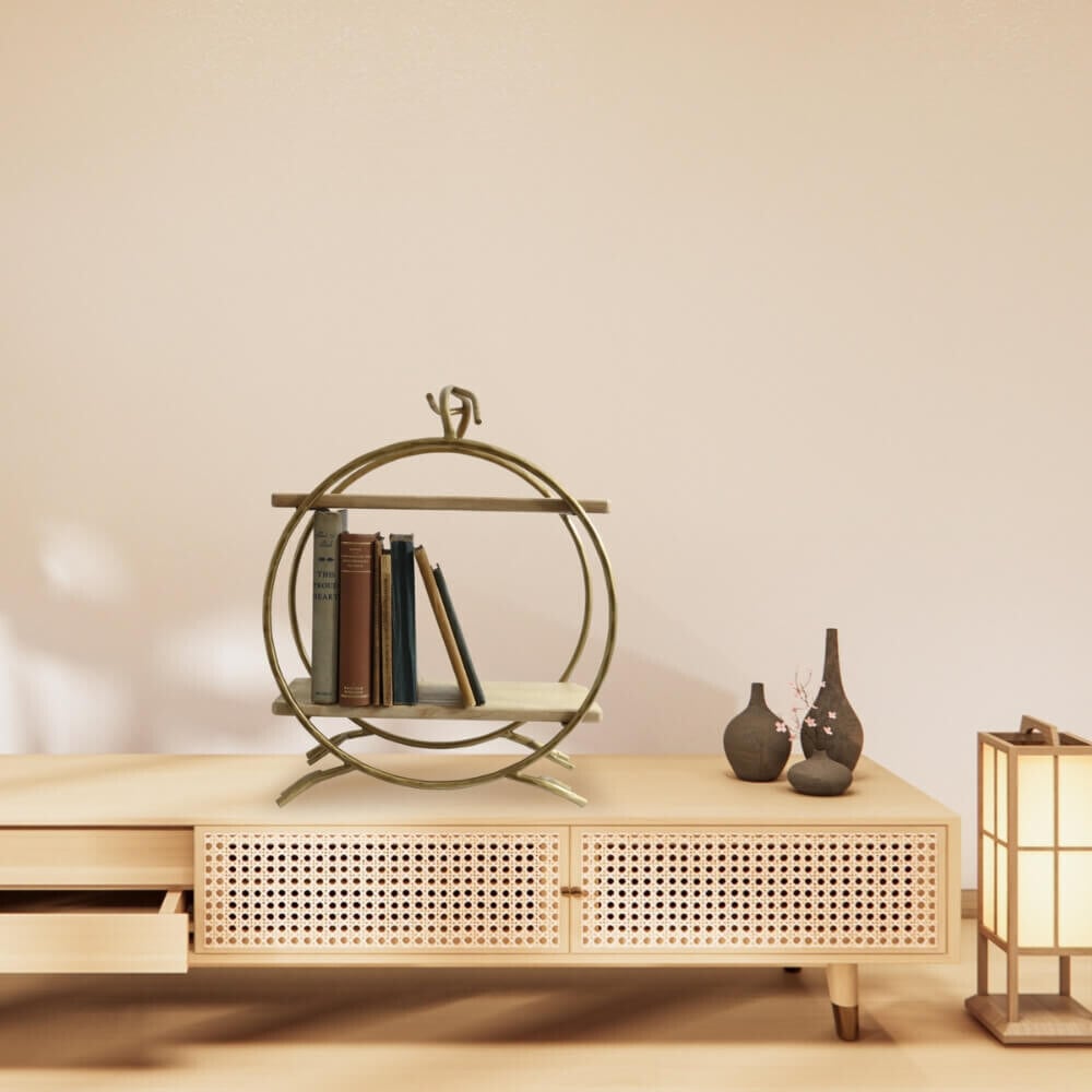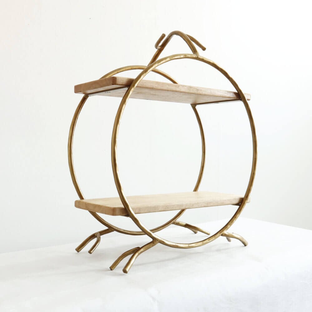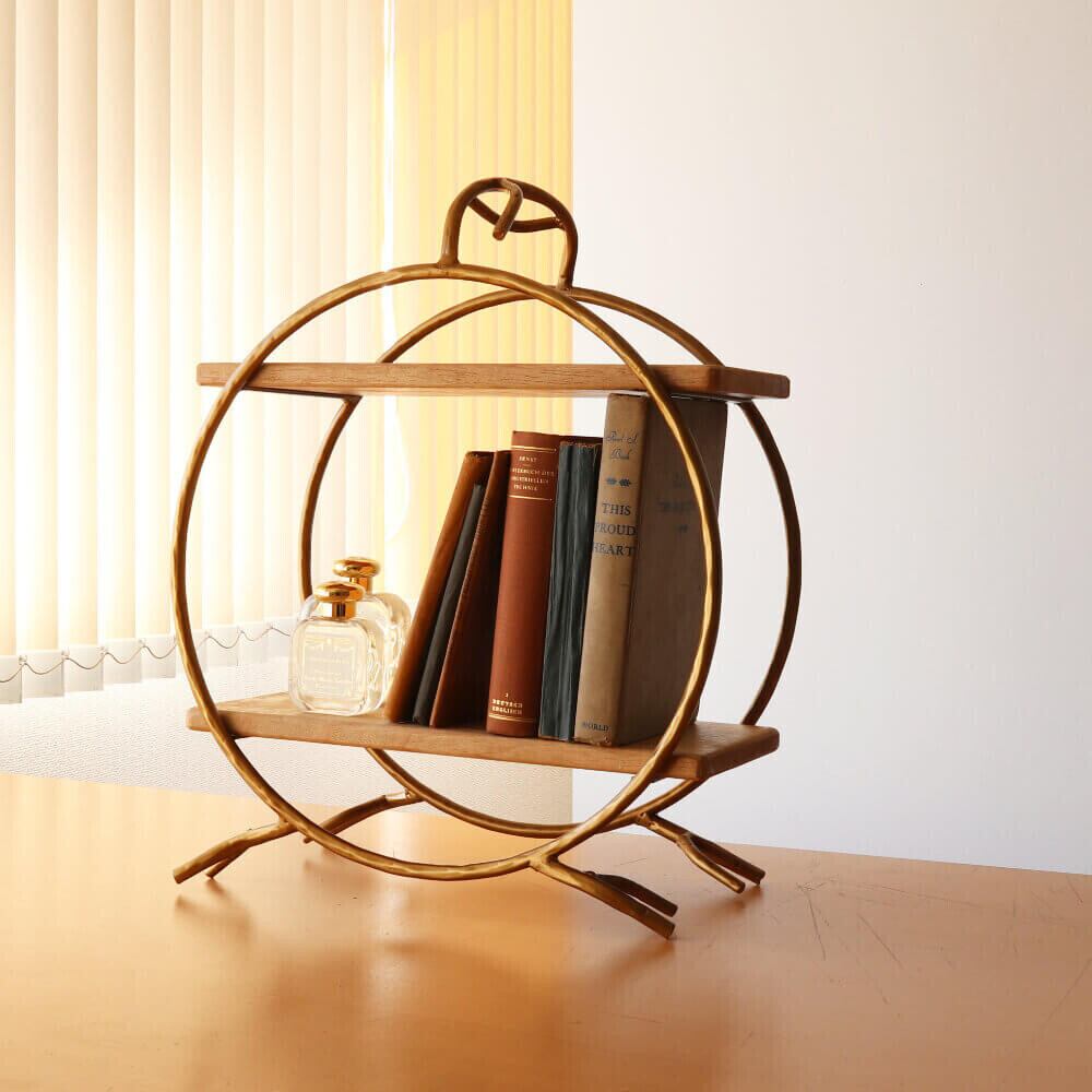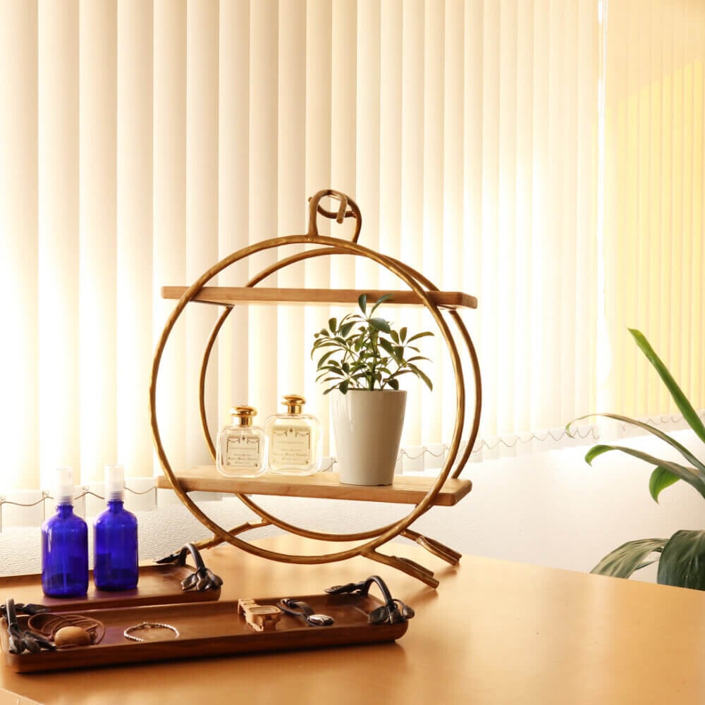 ゴールドアイアンの枠にナチュラルな色合いの木材がとても温かい雰囲気を演出します。和モダンテイストの空間にとてもマッチします。