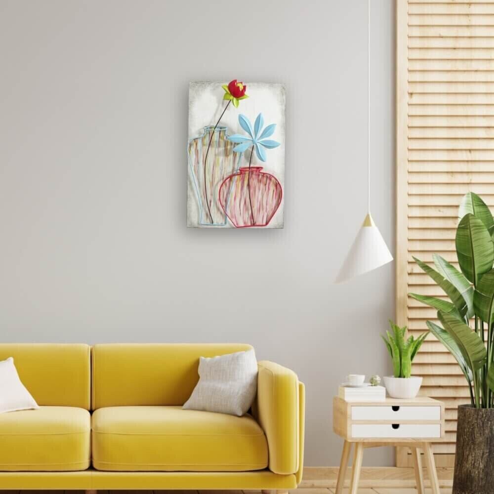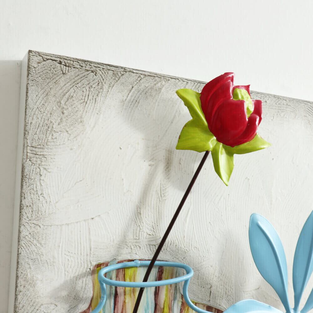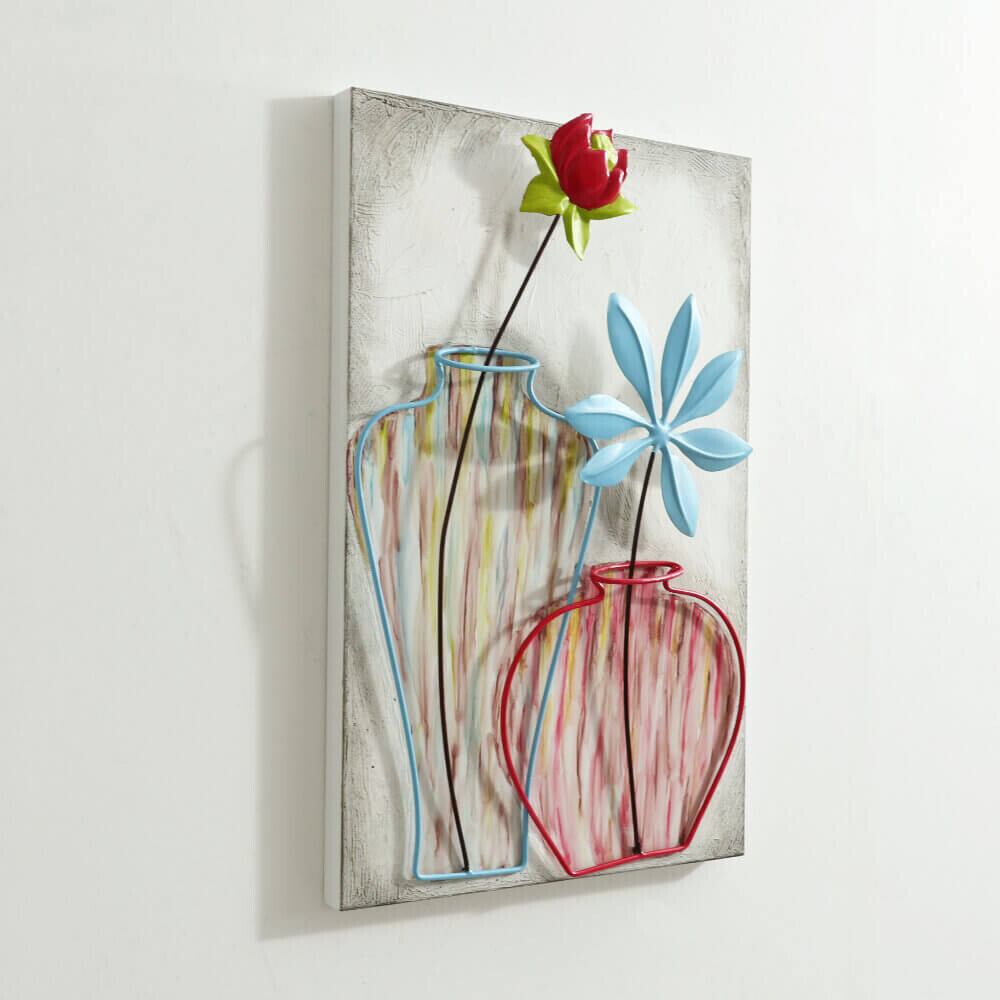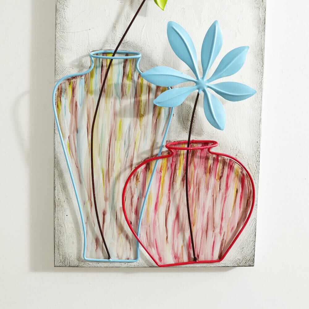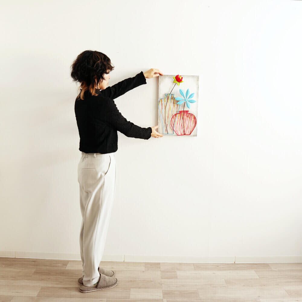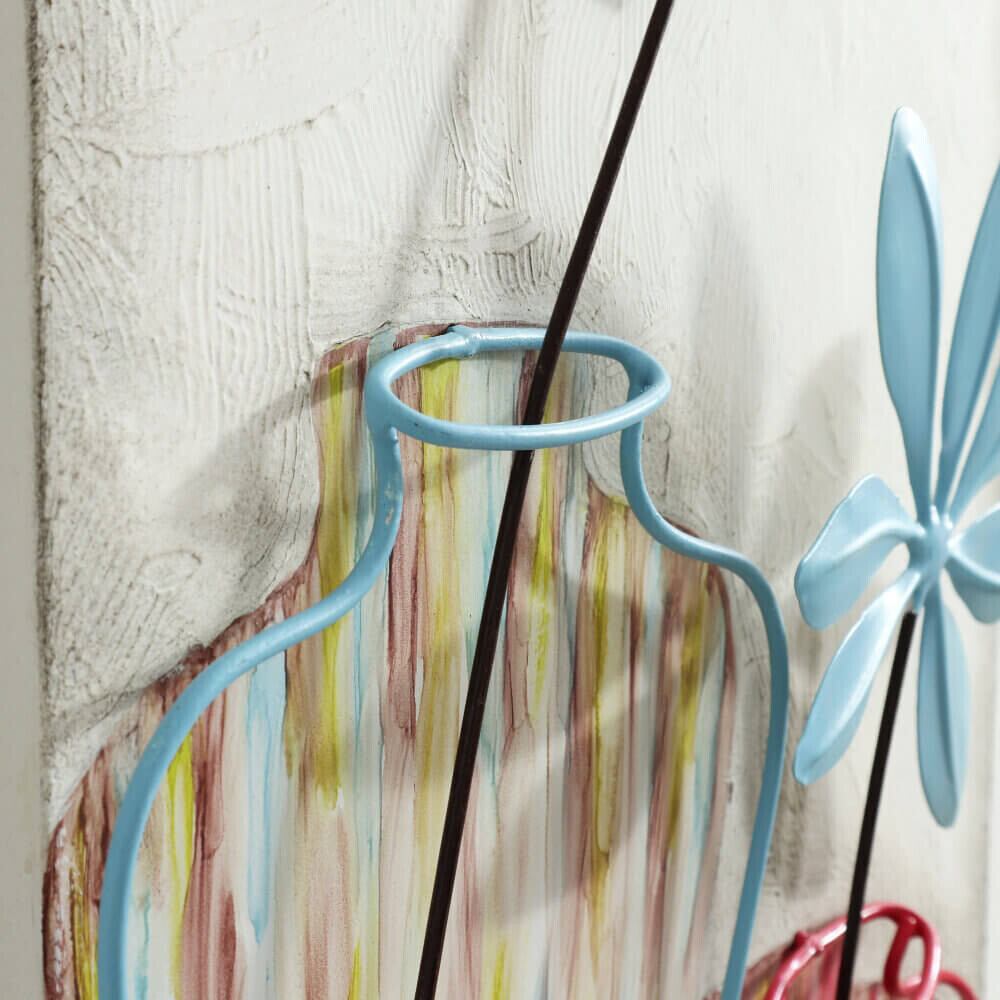 白を基調にカラフルなお花や花瓶模様が立体的に作られているウォールアート、壁飾りです。