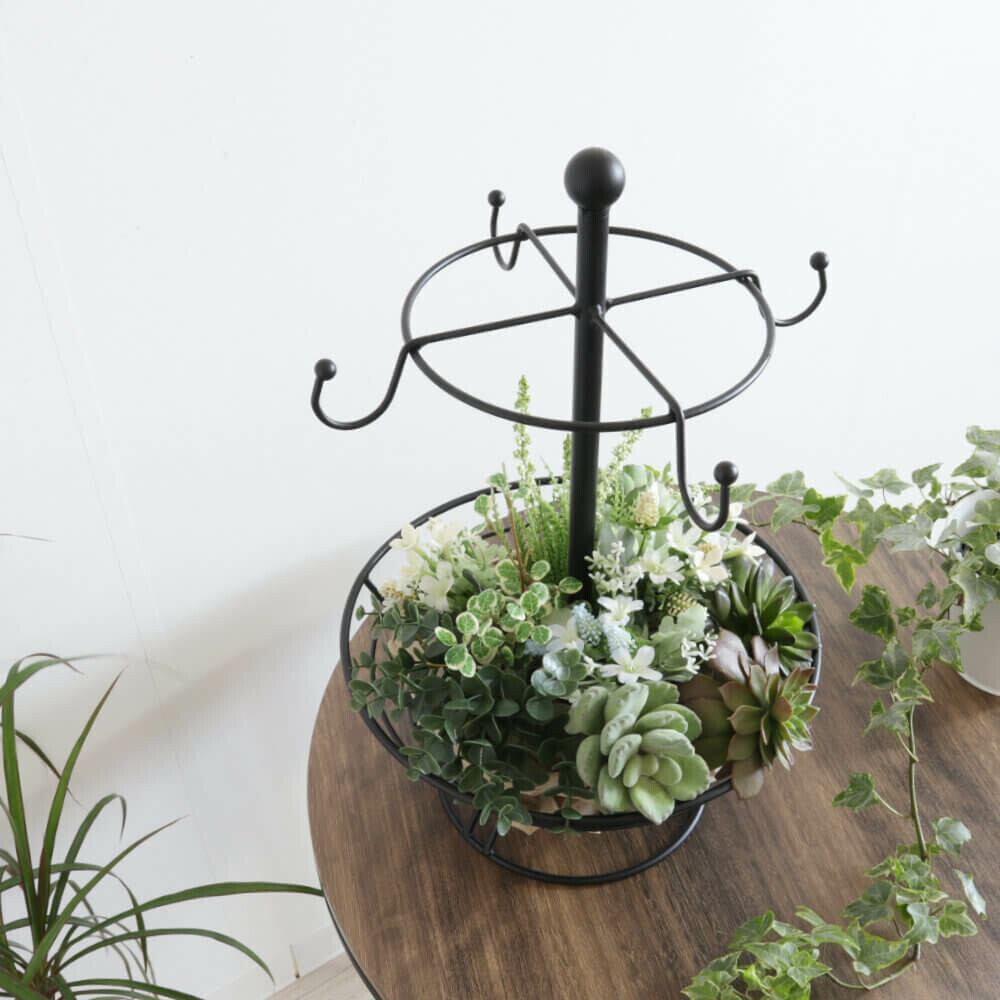下のトレイに造花などディスプレイインテリアとしての使用もできます。