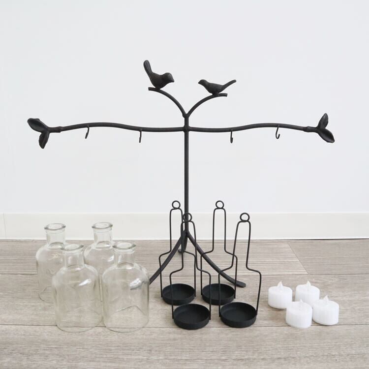 アンティーク調のアイアンに小鳥が乗ったとても可愛いアイアンフラワーベース(カラフルLED付き)です。