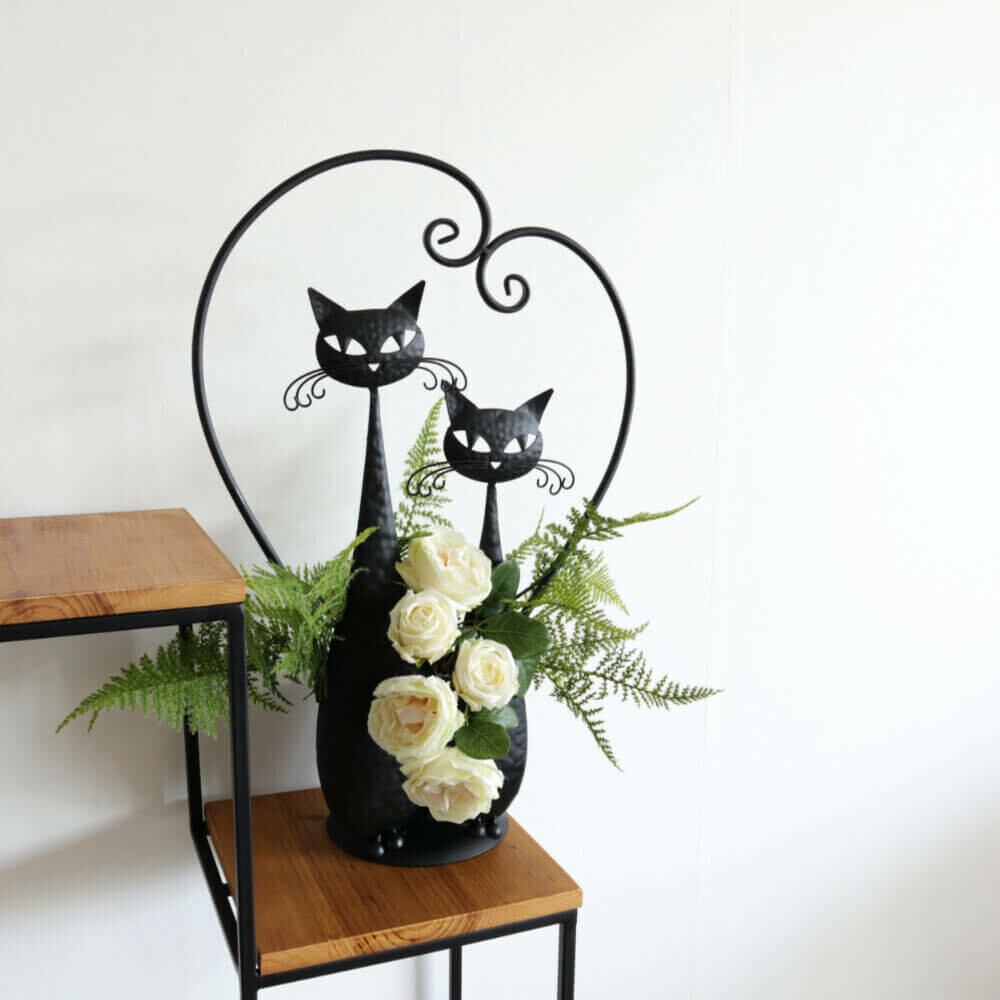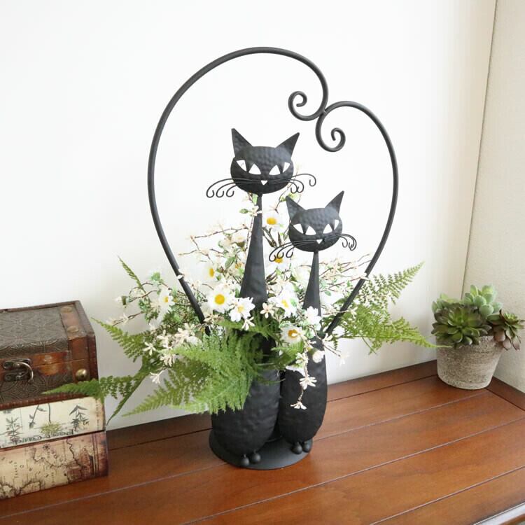 ネコちゃんがとてもかわいいアイアン製プランター(鉢カバー)です。