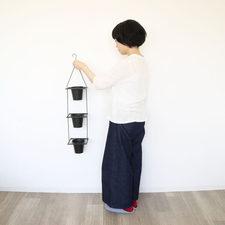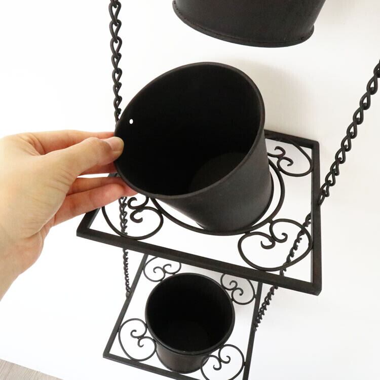 天井からぶら下げるタイプのアイアン製バスケット(プランター)です。