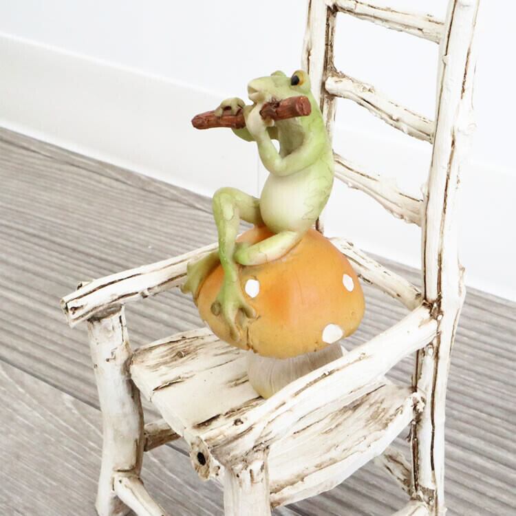 キノコの上でカエルが笛を弾いているとてもかわいい置物(オブジェ)です♪