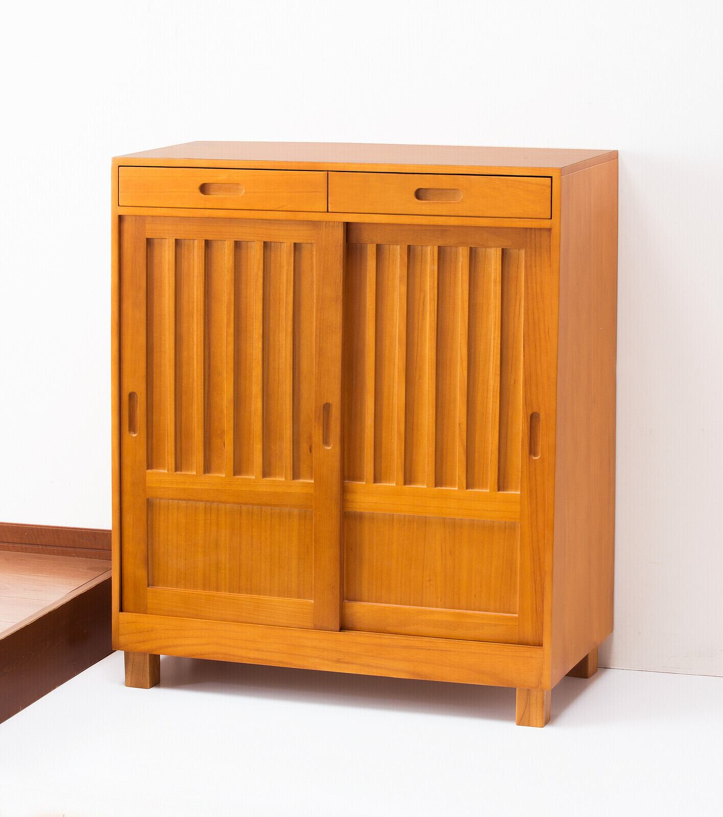 桐天然木の木目が美しい下駄箱