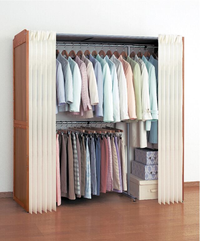 ●カーテン付きなので衣類をホコリから守り、中身も見えません。