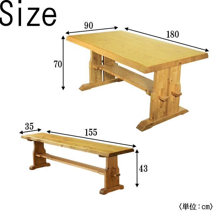 ■各サイズ::テーブル:幅180×奥行85×高さ70cmベンチ:幅155×奥行35×高さ43cm