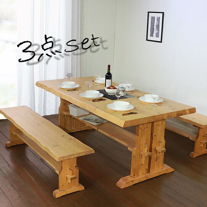 【商品名】重厚なダイニング3点セット(テーブル幅180cm×1点 / ベンチ155cm×2点)