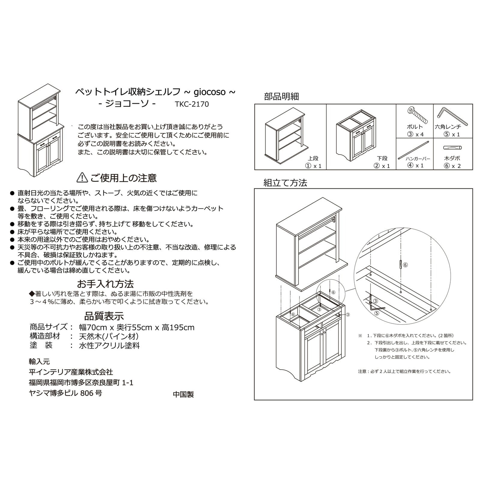 【サイズ】幅70×奥行55×高さ195cm