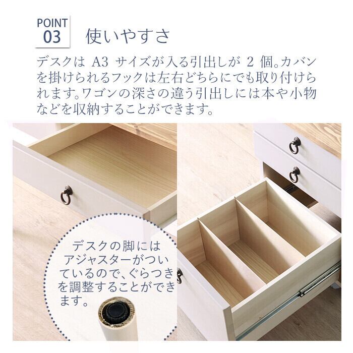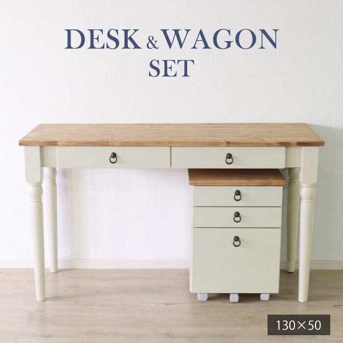■各サイズ:デスク:幅130×奥行50×高さ74cm・ワゴン:幅42×奥行46×高さ57cm