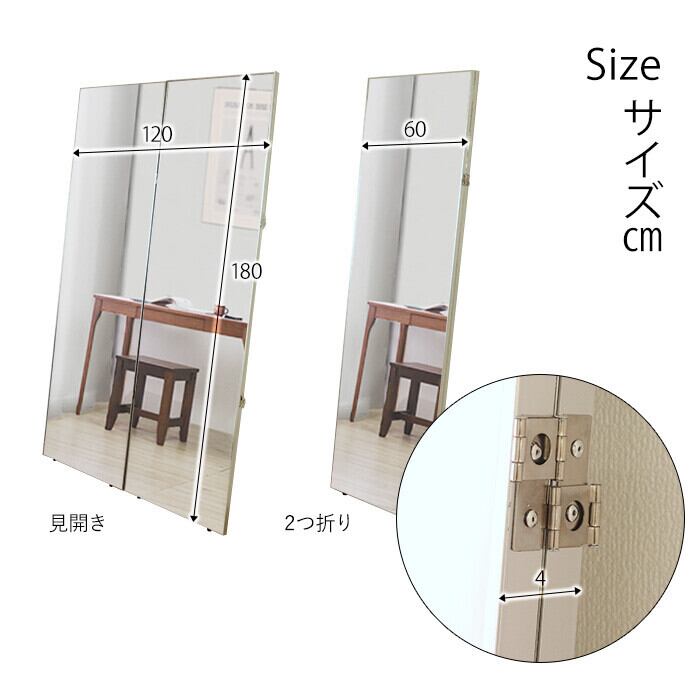 【商品名】割れないミラー 2つ折れ 60+60×180