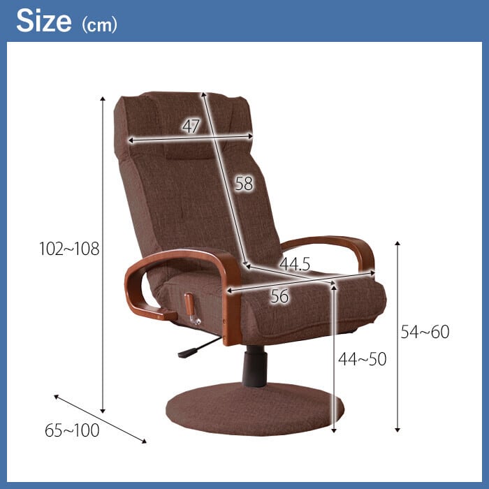 【サイズ】幅56×奥行65〜100×高さ102〜108×座面高44〜50cm