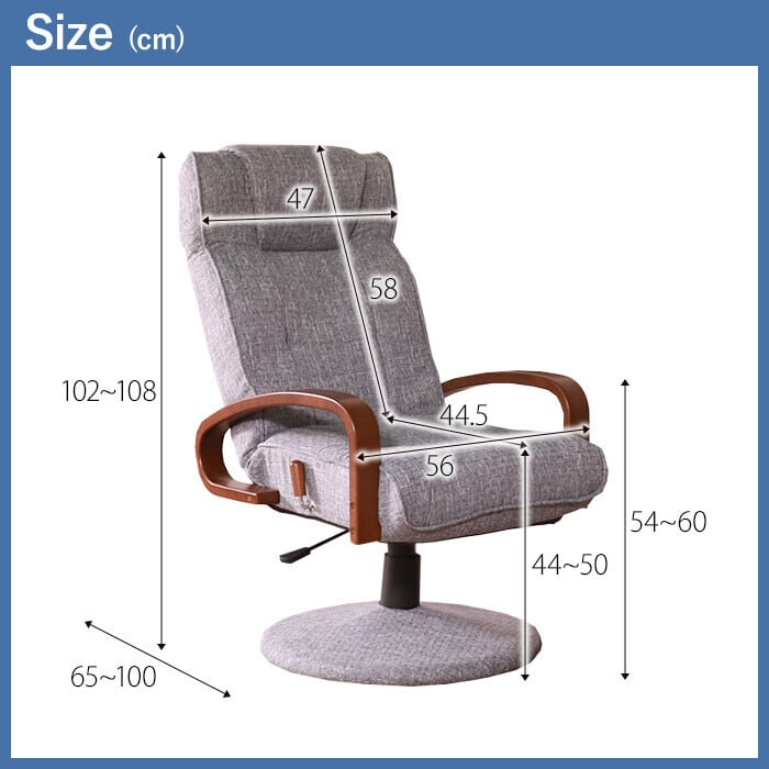 【サイズ】幅56×奥行65〜100×高さ102〜108×座面高44〜50cm