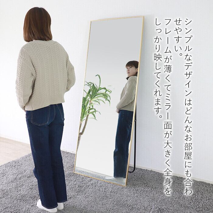 01.薄型アルミフレームデザインのモダンなスタンドミラー。