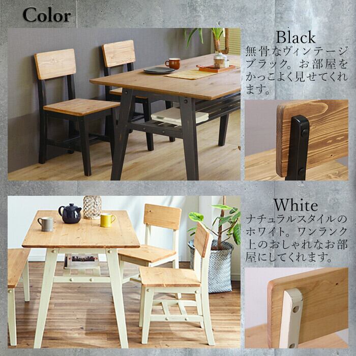 【素 材】パイン材無垢、天然オイル塗装(座面・背面)、水性塗料(他)