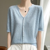 ●「【大人気】2024年夏新作 テンセル カジュアル オールマッチ 半袖Tシャツ レディース Vデザイン ファッション オールマッチ 中空クロシェ編み」は、トレンド感満載のデザインと快適な着心地を両立させたアイテムです!柔らかなテンセル素材を使用し、肌触りが良く、夏にぴったりの軽やかさが魅力です。