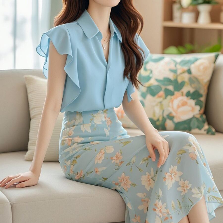 ●「【最新作】今年の人気の美しい塩風ストリートブルーのシャツとスカートのツーピーススーツでファッションを完璧に揃えた夏」は、夏のおしゃれを楽しむための特別なアイテムです!美しい塩風ブルーが、涼しげでありながらスタイリッシュな印象を与えます。このツーピーススーツは、夏の装いにぴったりな一着です。